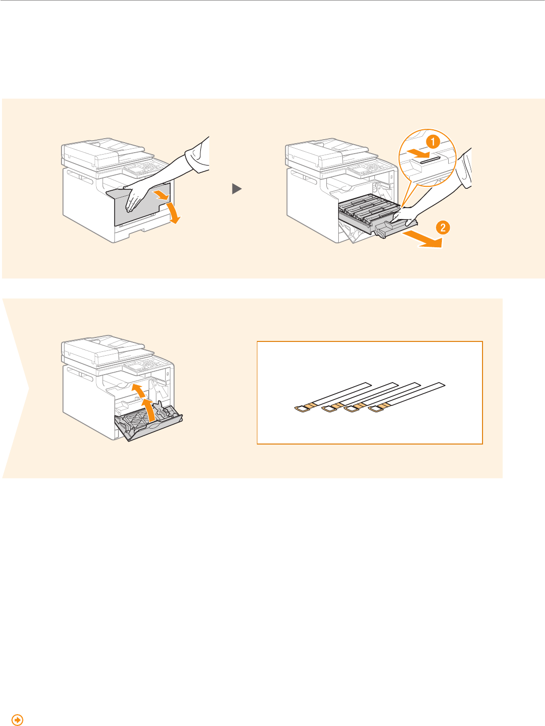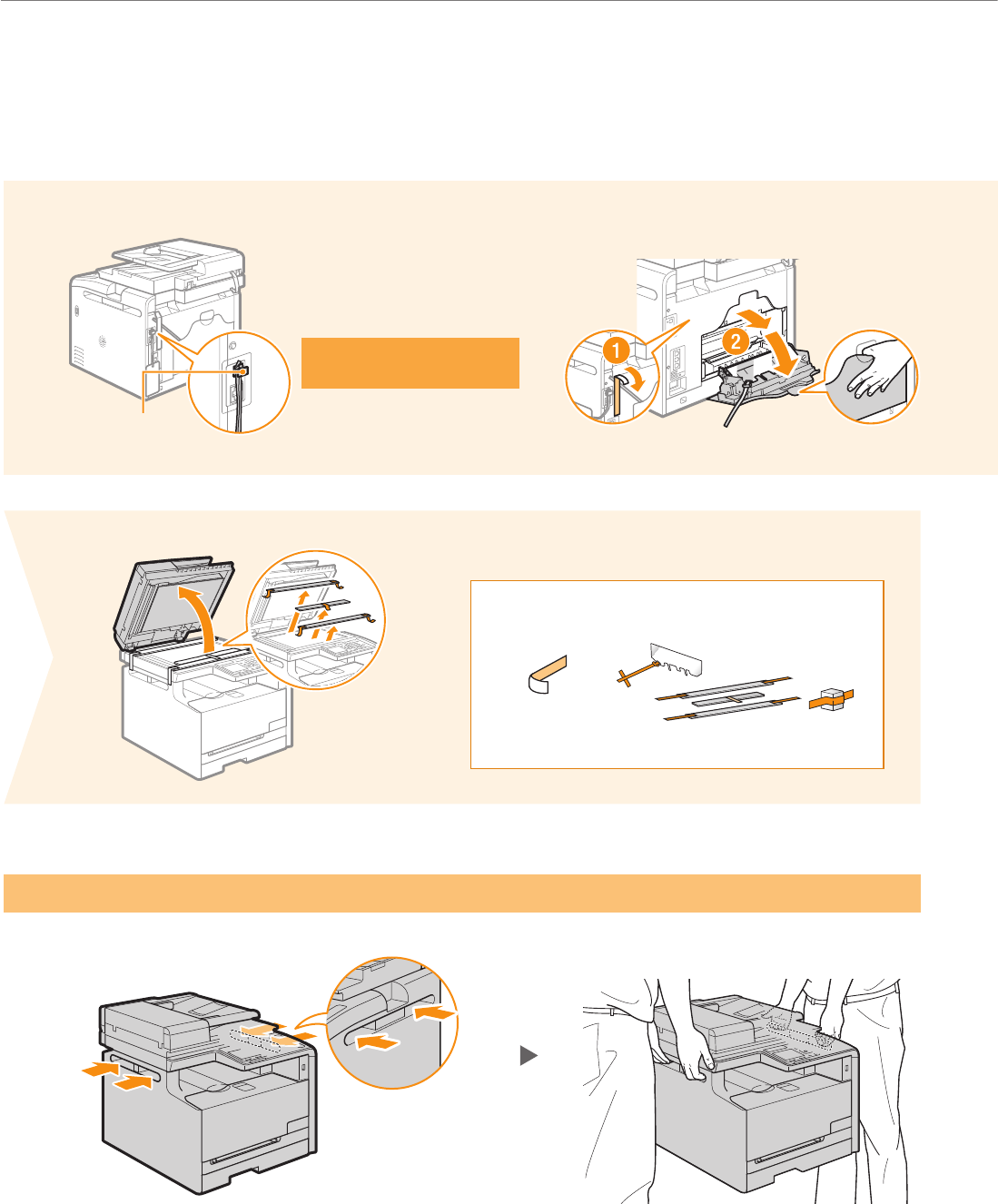 Remove all the packing materials, such as orange tape. Packing materials may change in form or placement, or may be added or