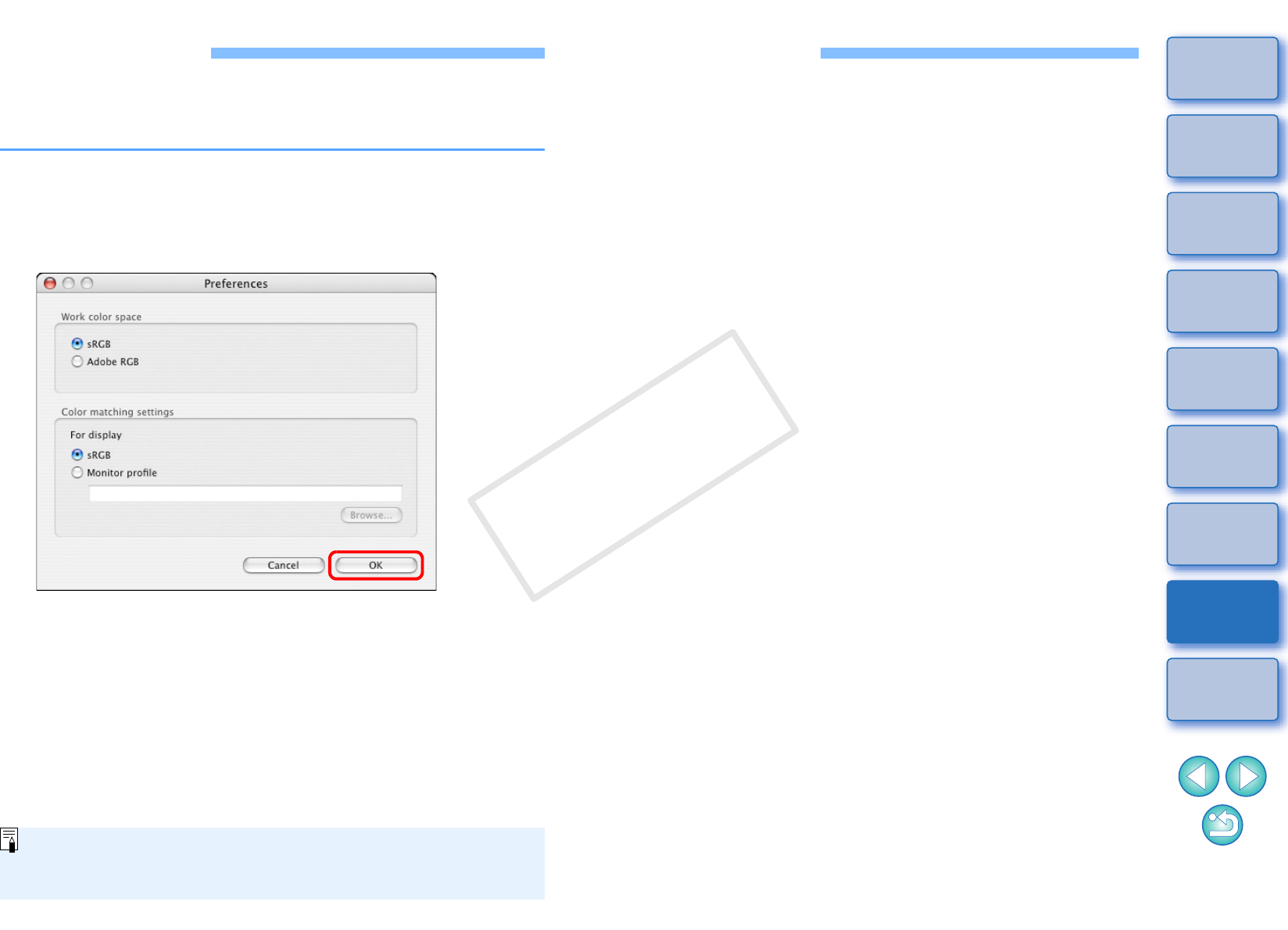 If you have changed the work color space during the adjustment