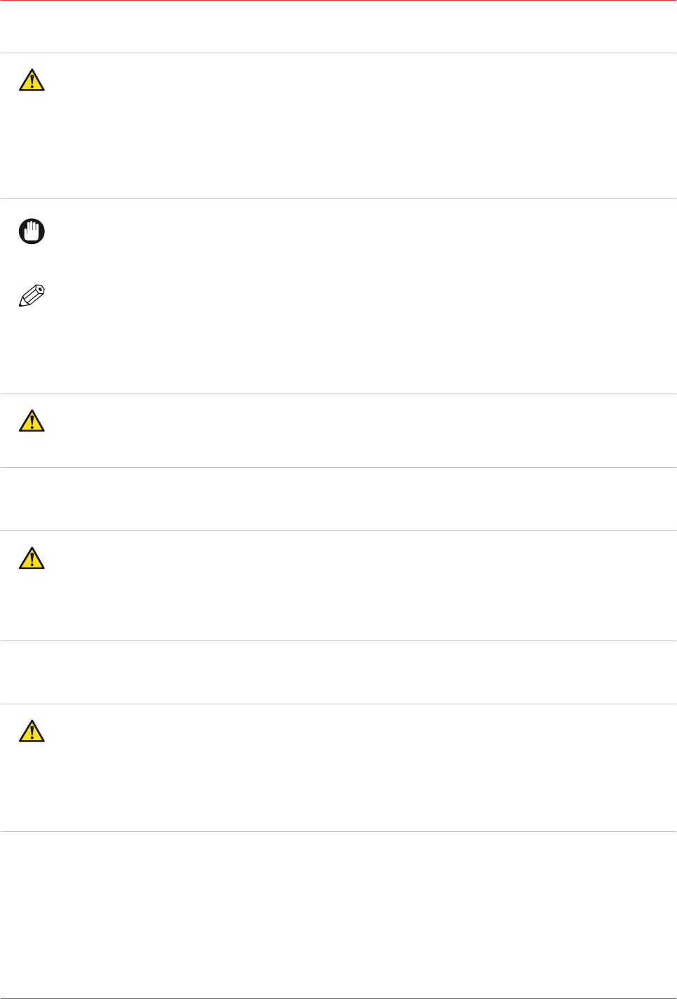 The following indicators are used in the machine to warn the user of possible safety risks: