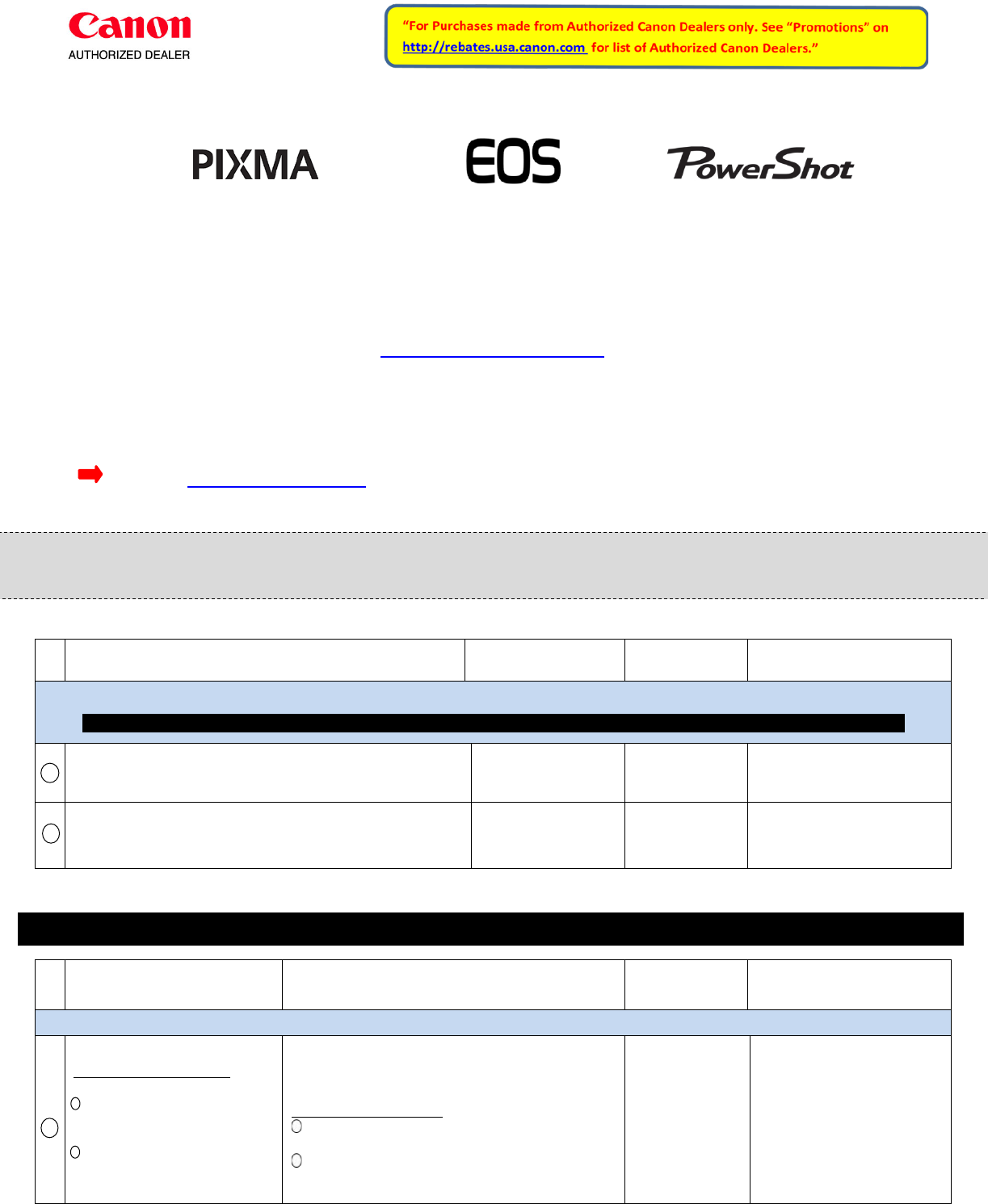 Information). For full listing of participating Authorized Canon Dealers, please visit: http://rebates.usa.canon.com. Photocopied UPC barcodes and “Secondary