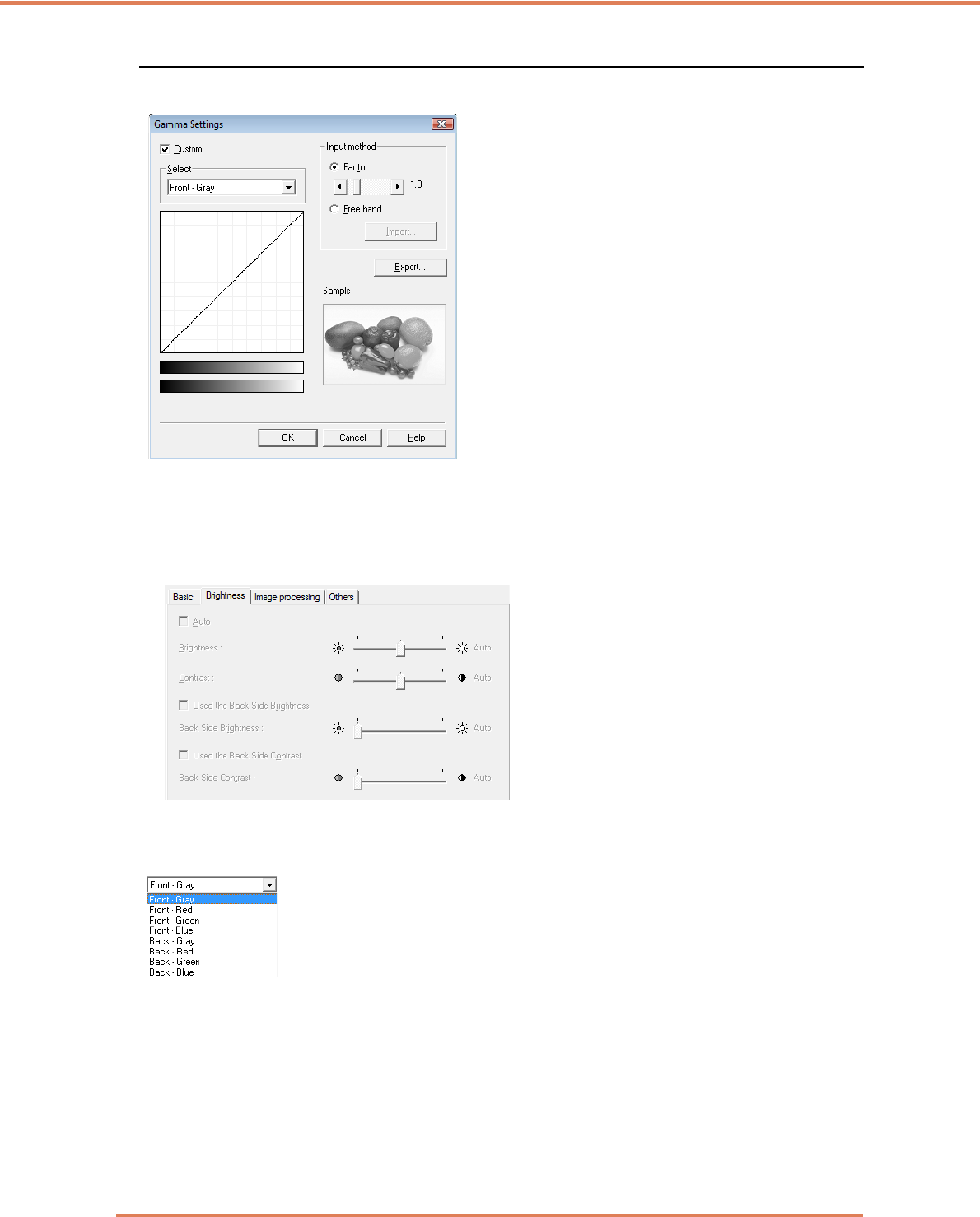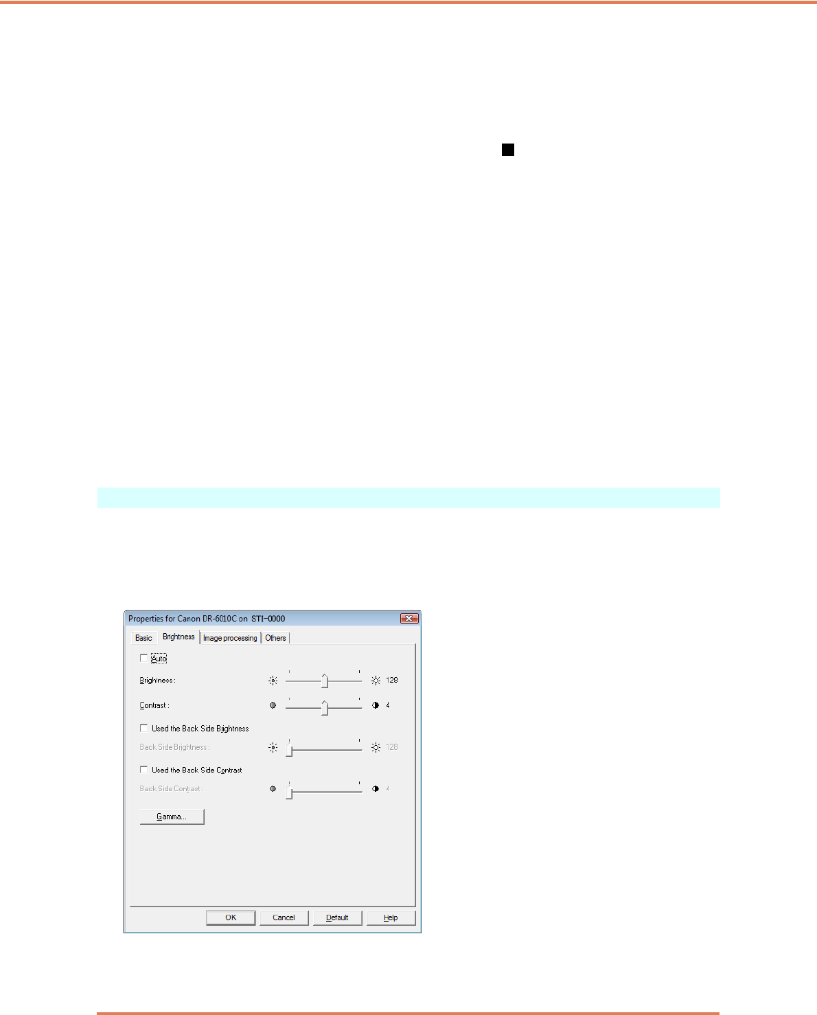 Adjust the back side brightness and contrast on the [Brightness] tab sheet. However, when a text