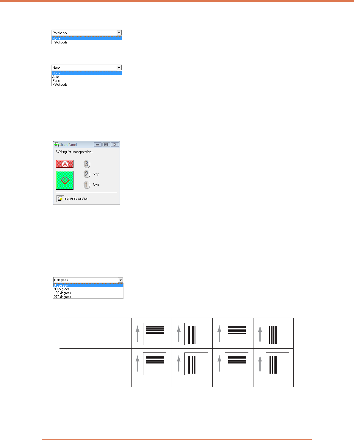 Select a rotation angle (0, 90, 180 or 270 degrees) as the Document Orientation setting on the