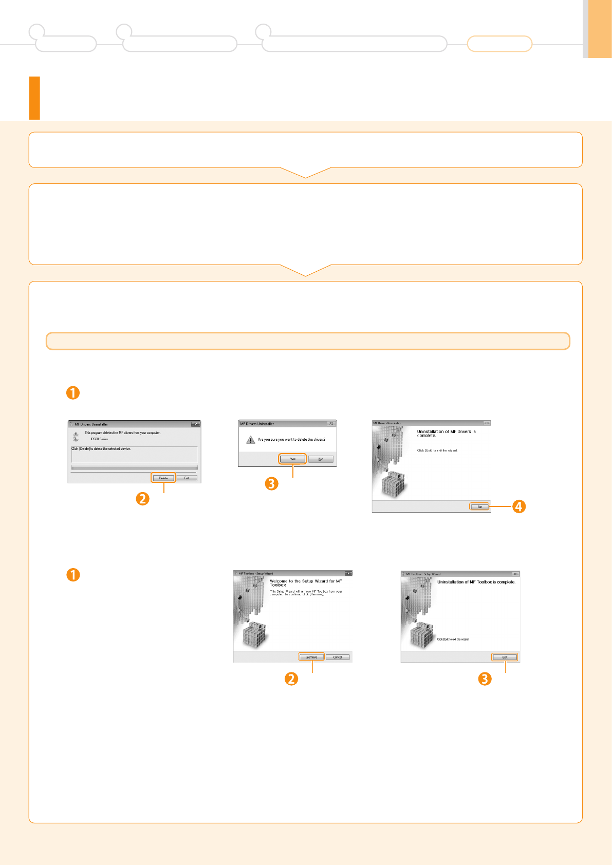 If you want to delete the Scanner Driver or MF Toolbox, proceed to step .