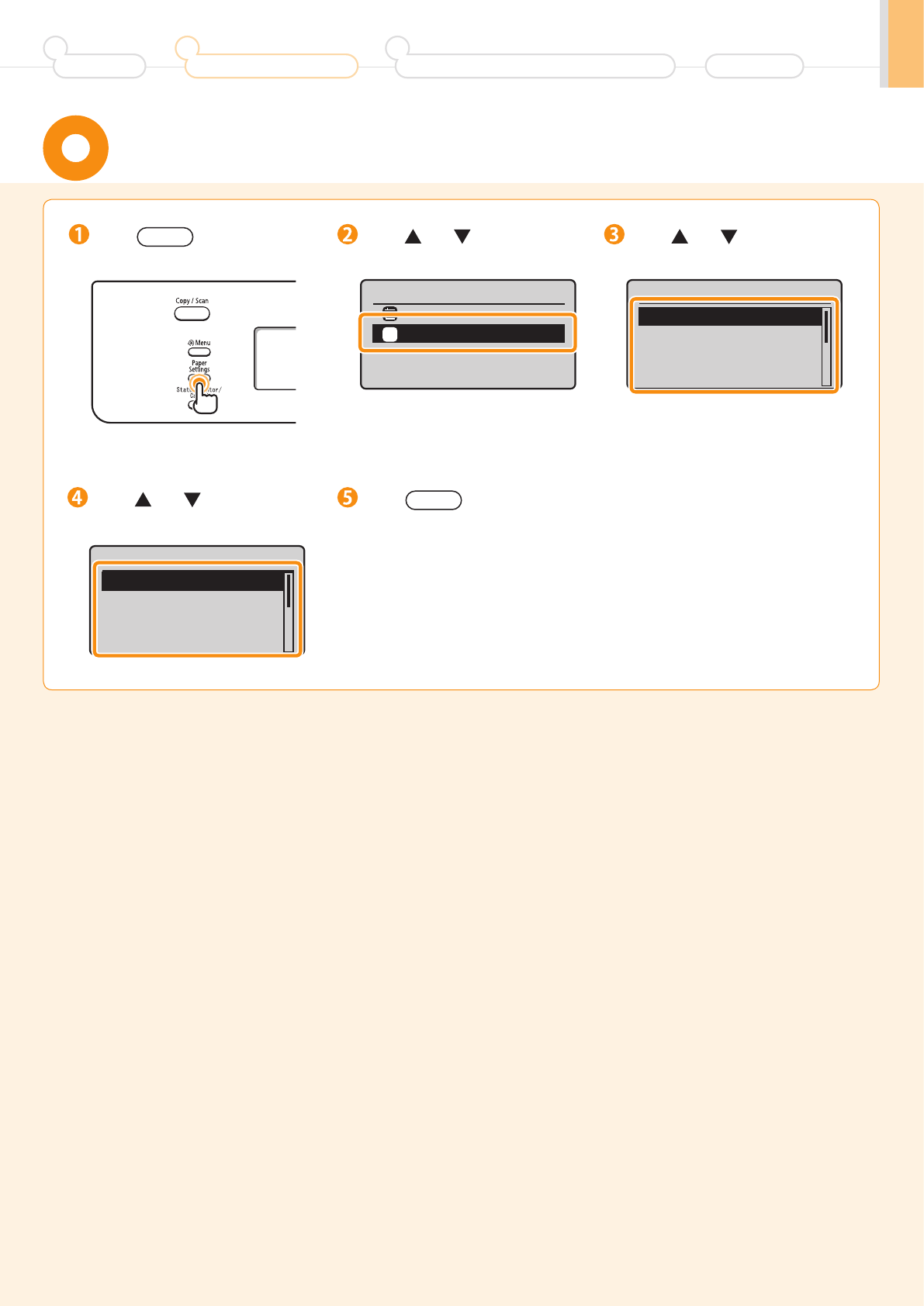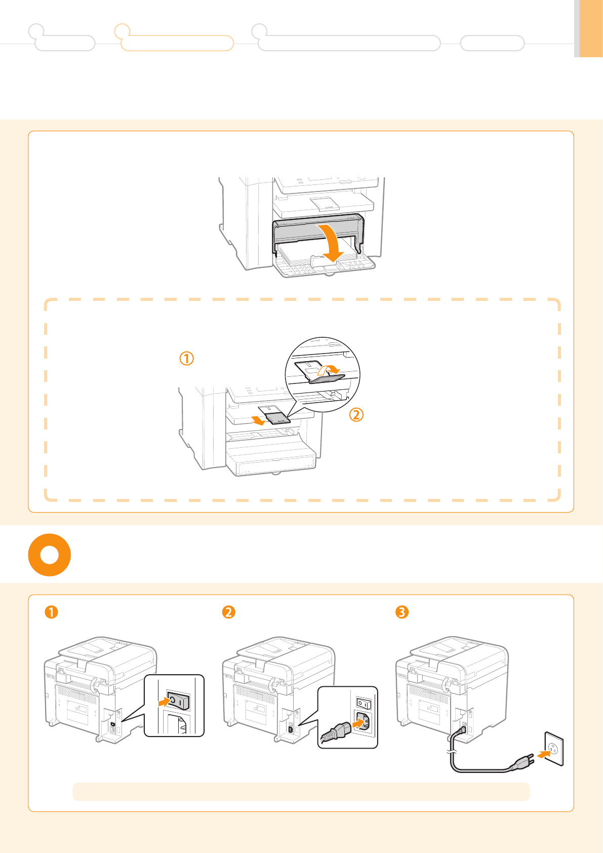 Settings for paper sizes and paper types are required after turning the power ON.