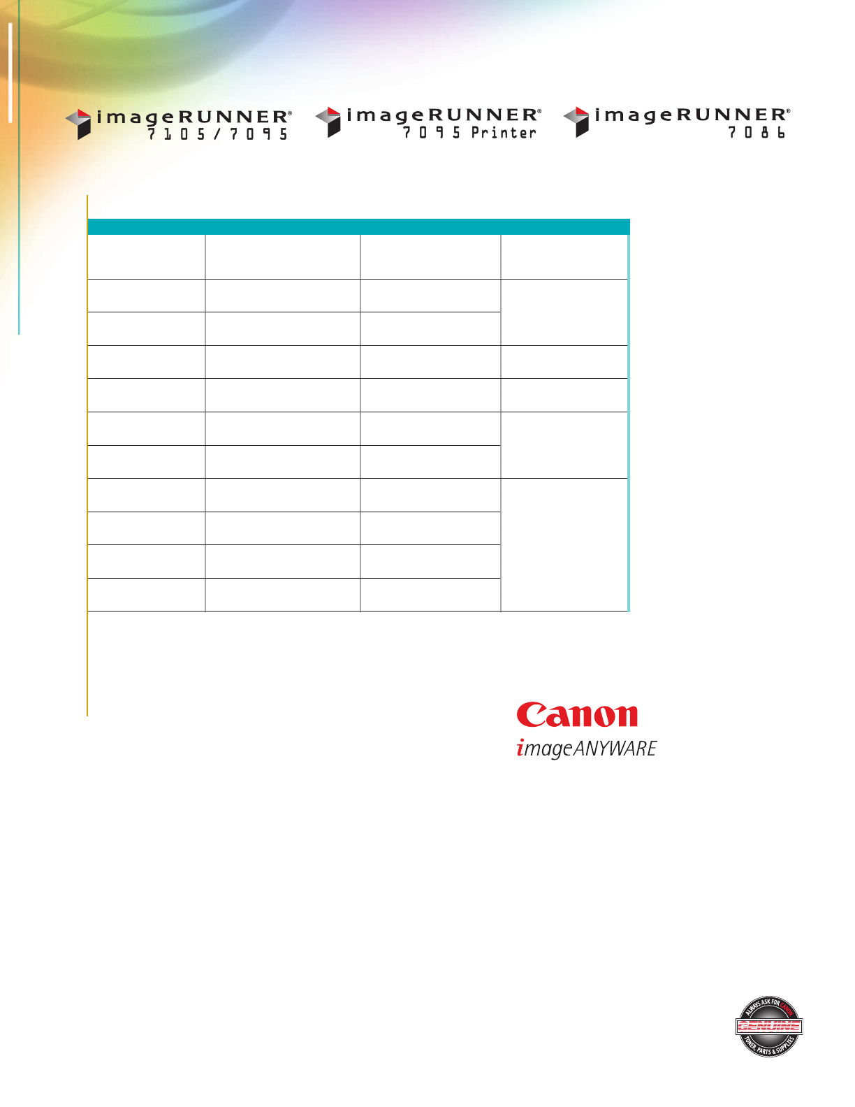 imageRUNNER 7105/7095/7095 Printer/7086 devices,
