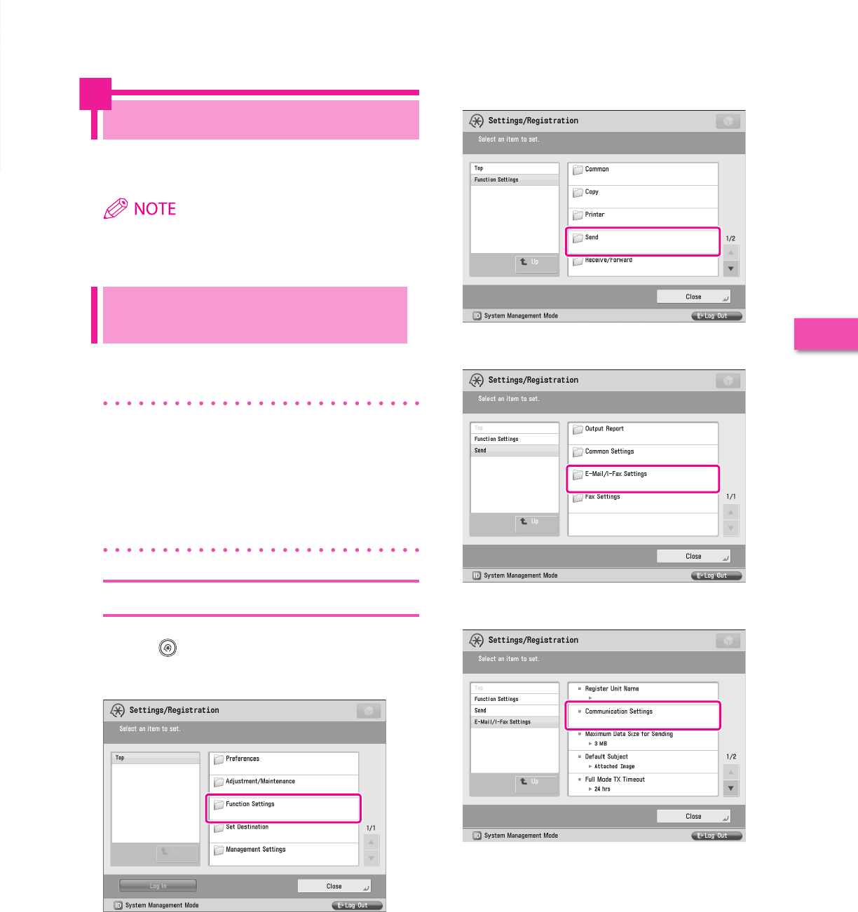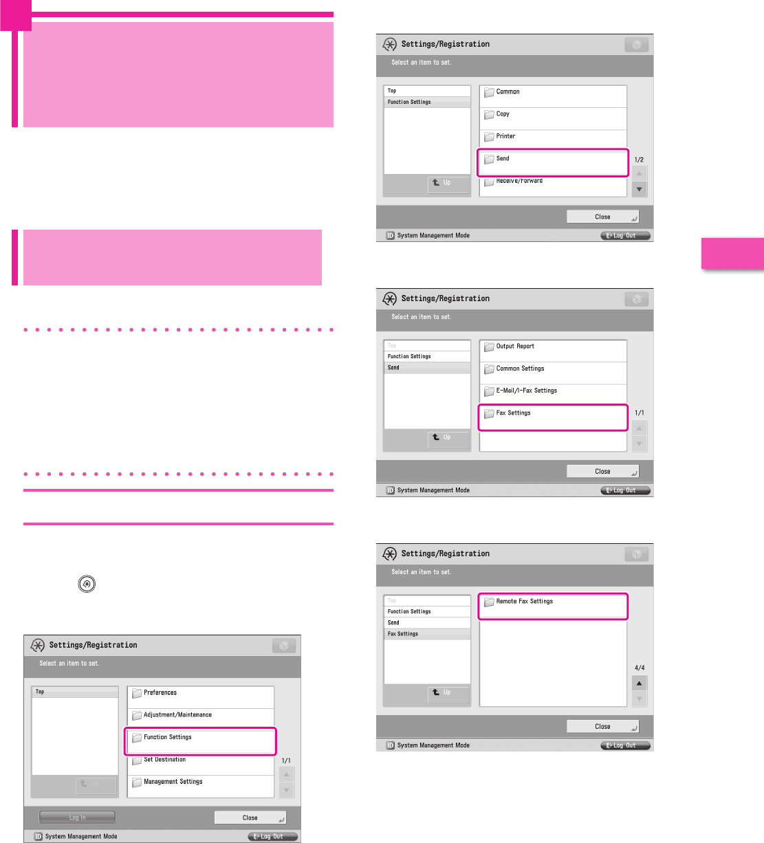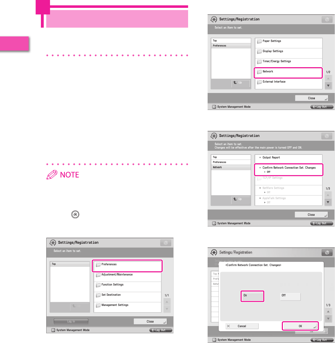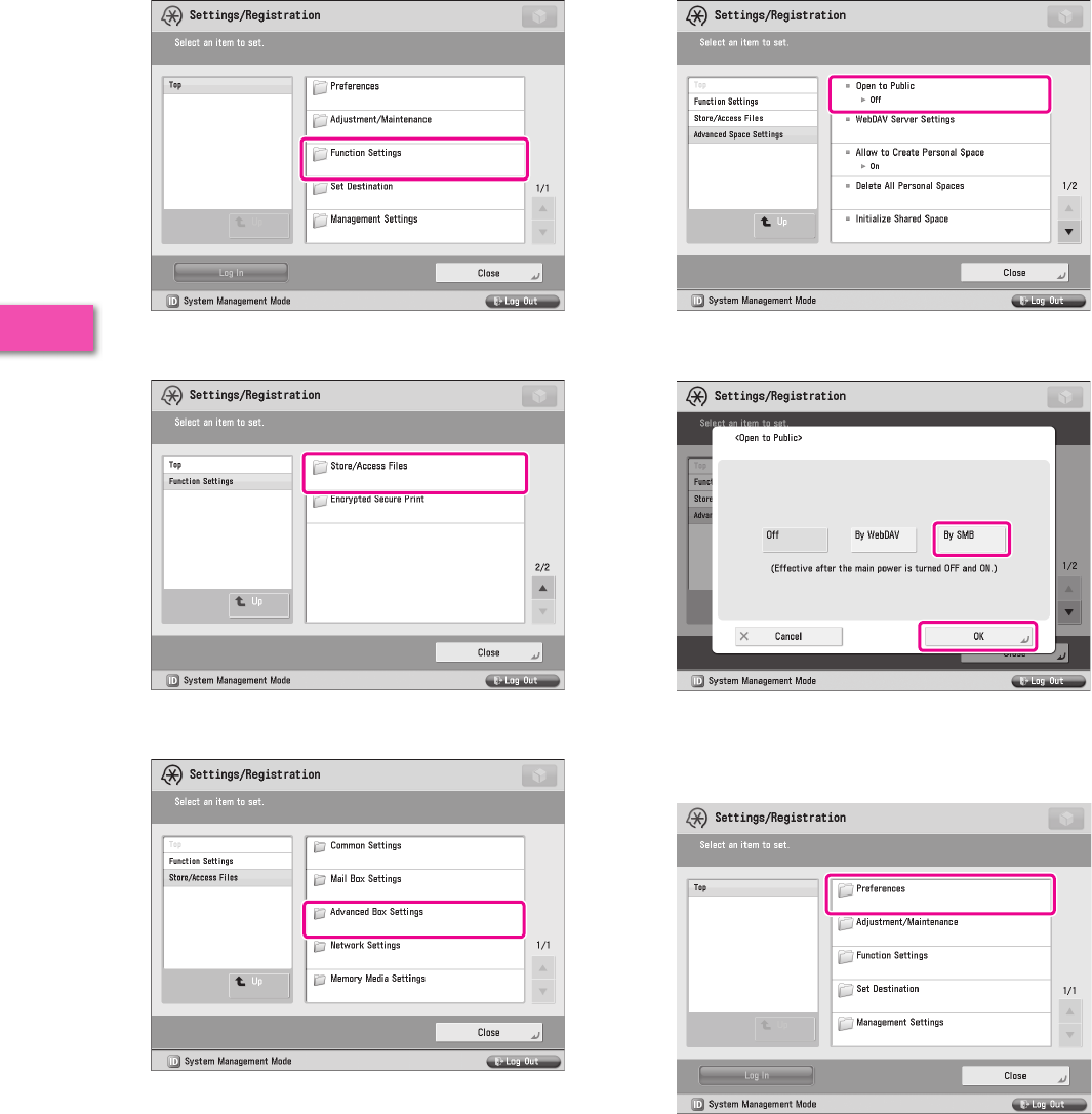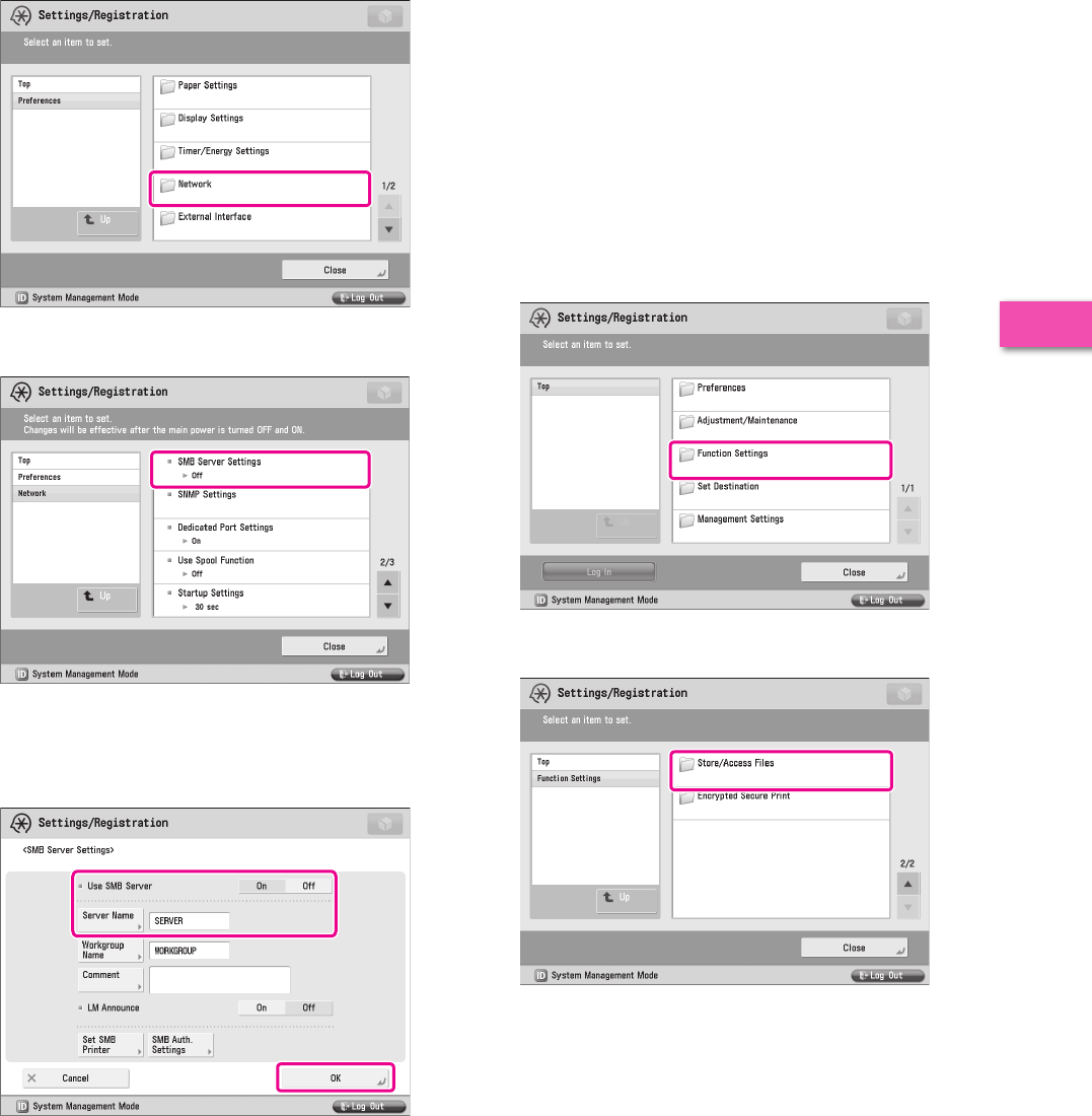 It is necessary to specify settings in advance to use some functions of the machine. Refer to “Flow of Settings for Using