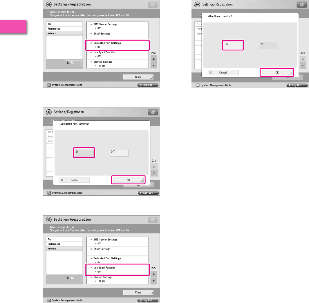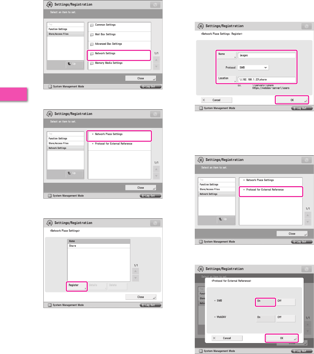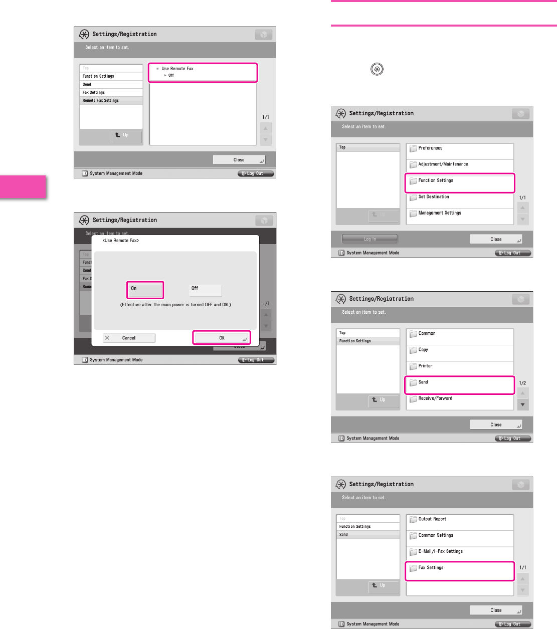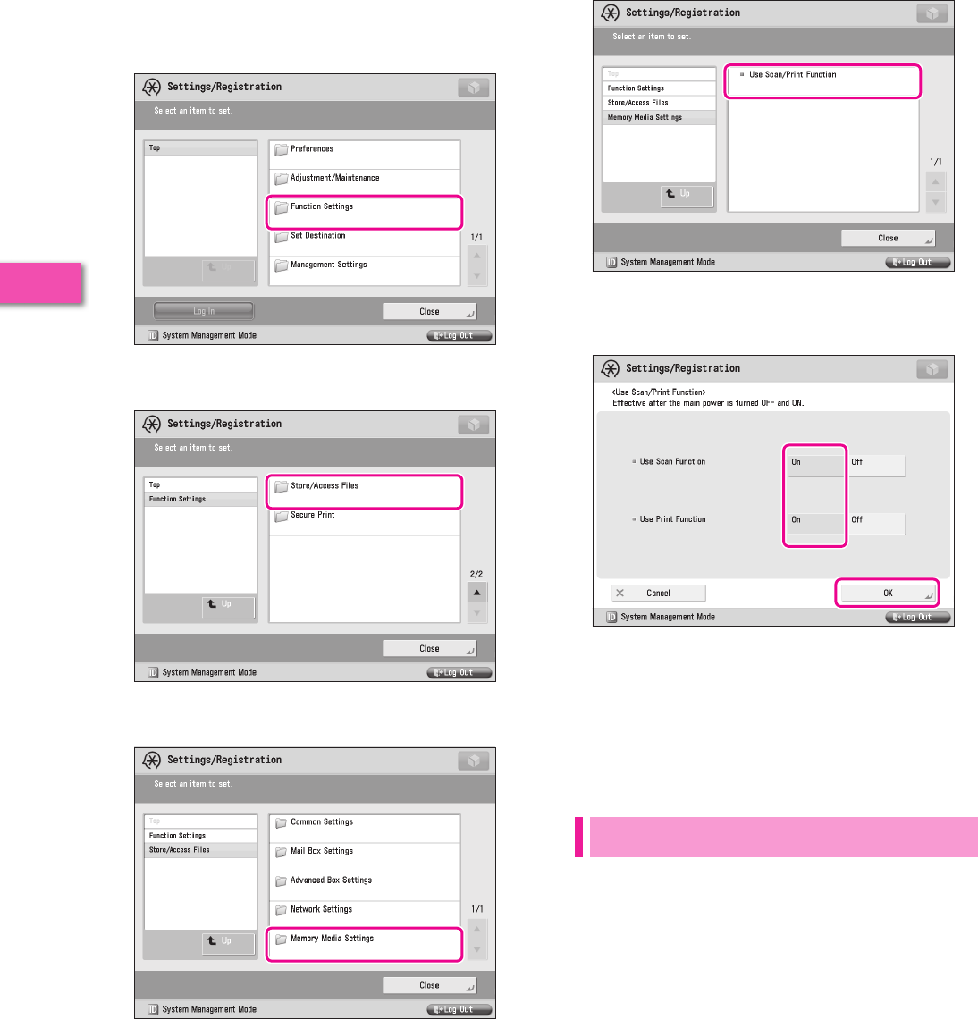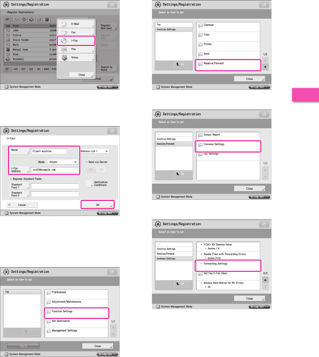 It is necessary to specify settings in advance to use some functions of the machine. Refer to “Flow of Settings for Using