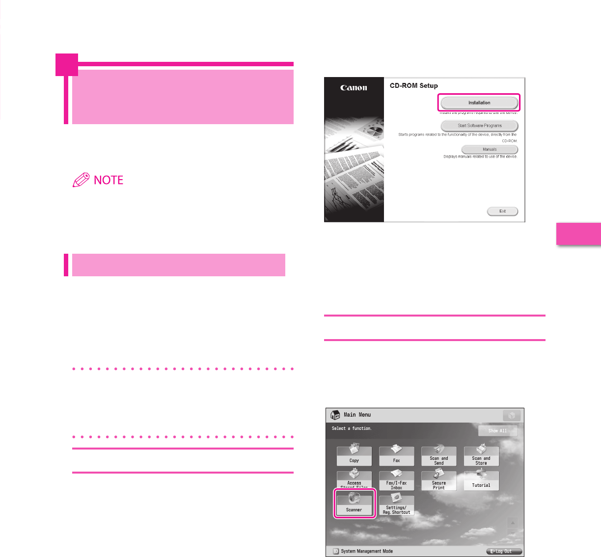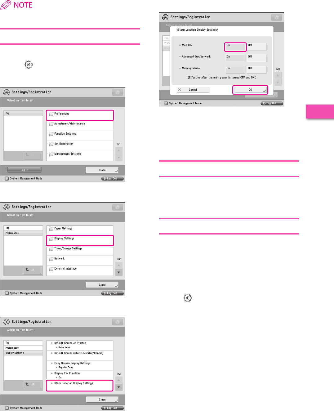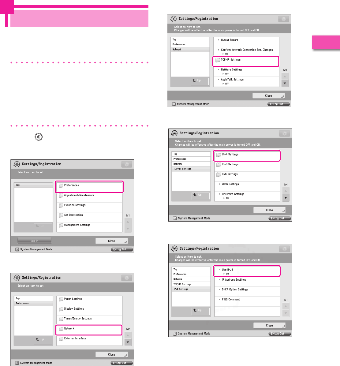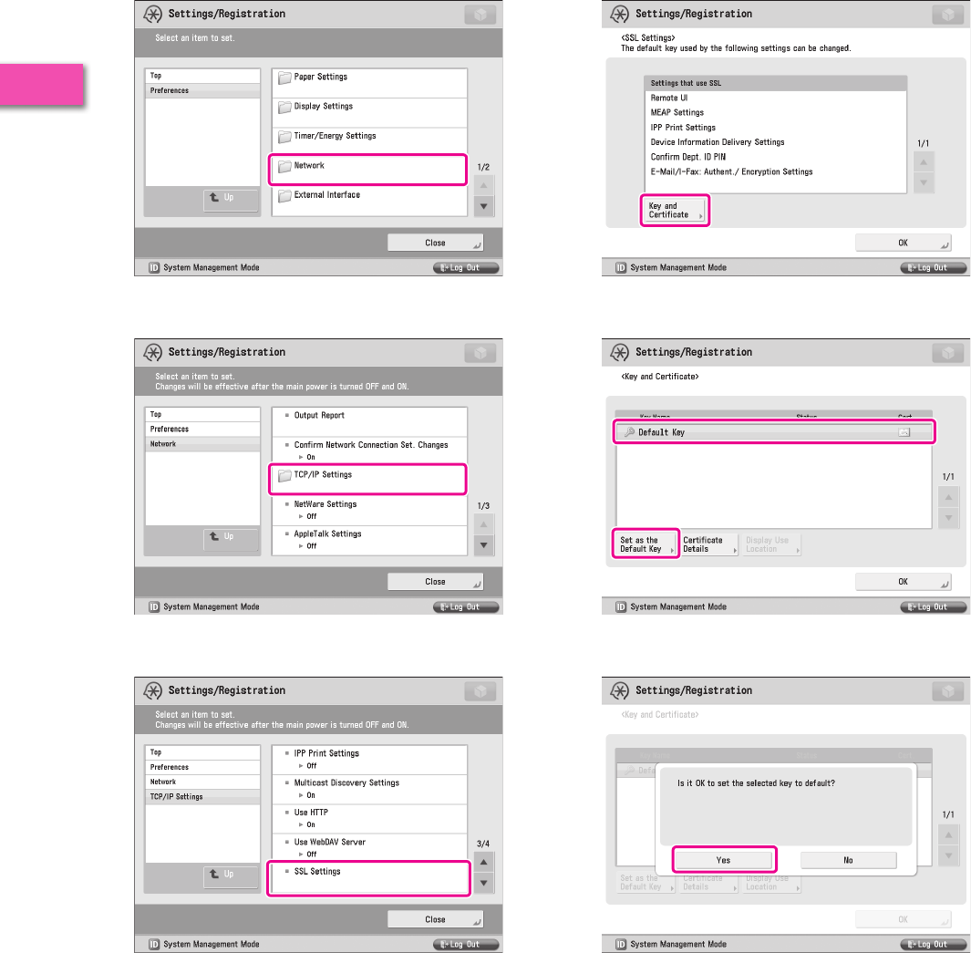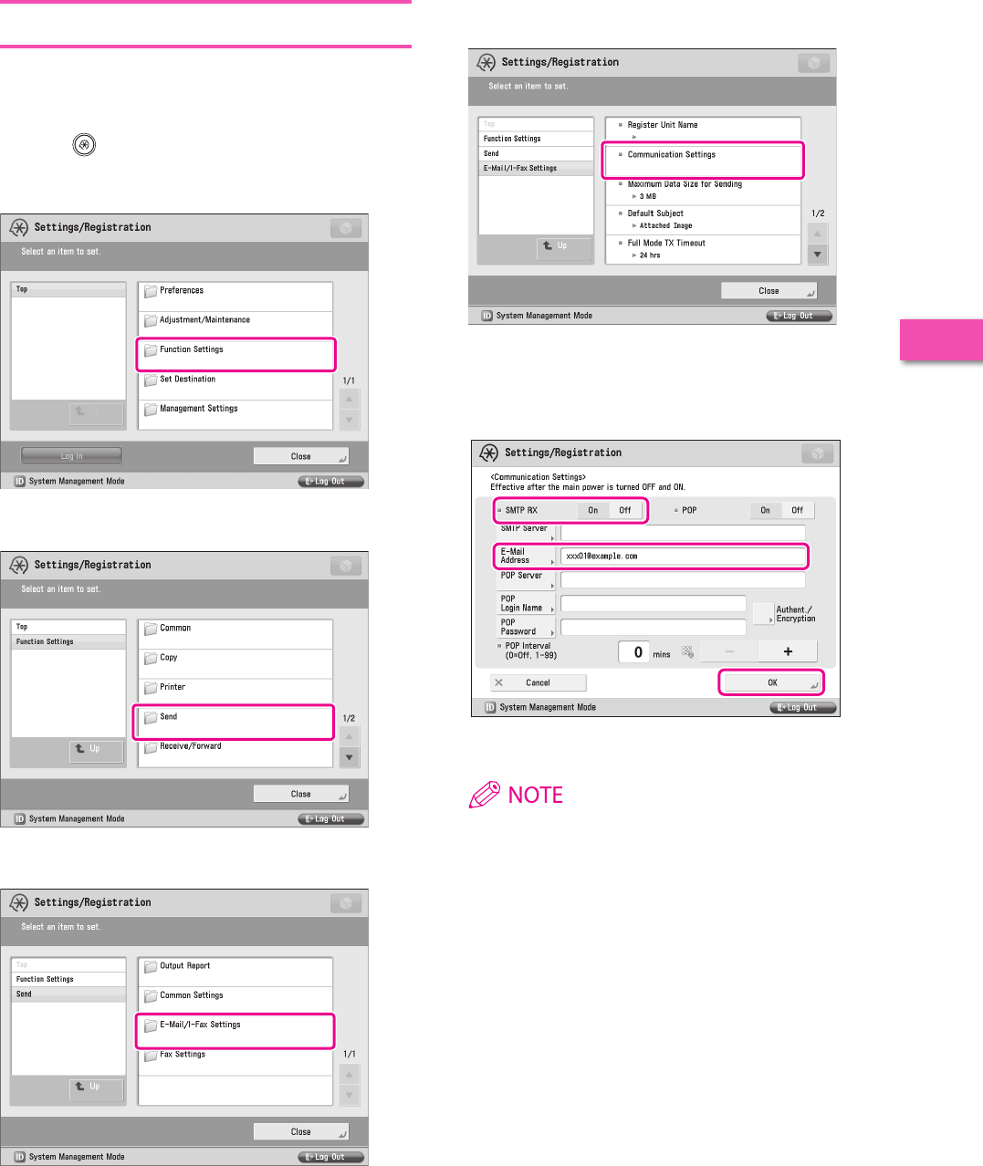 It is necessary to specify settings in advance to use some functions of the machine. Refer to “Flow of Settings for Using