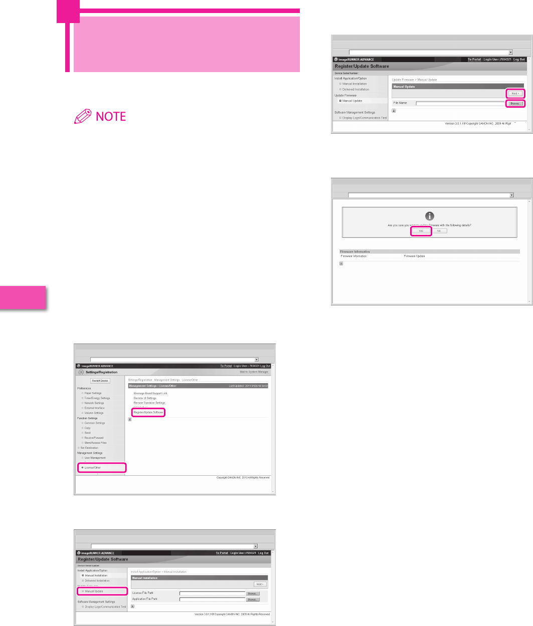Registering the Firmware from the Remote UI