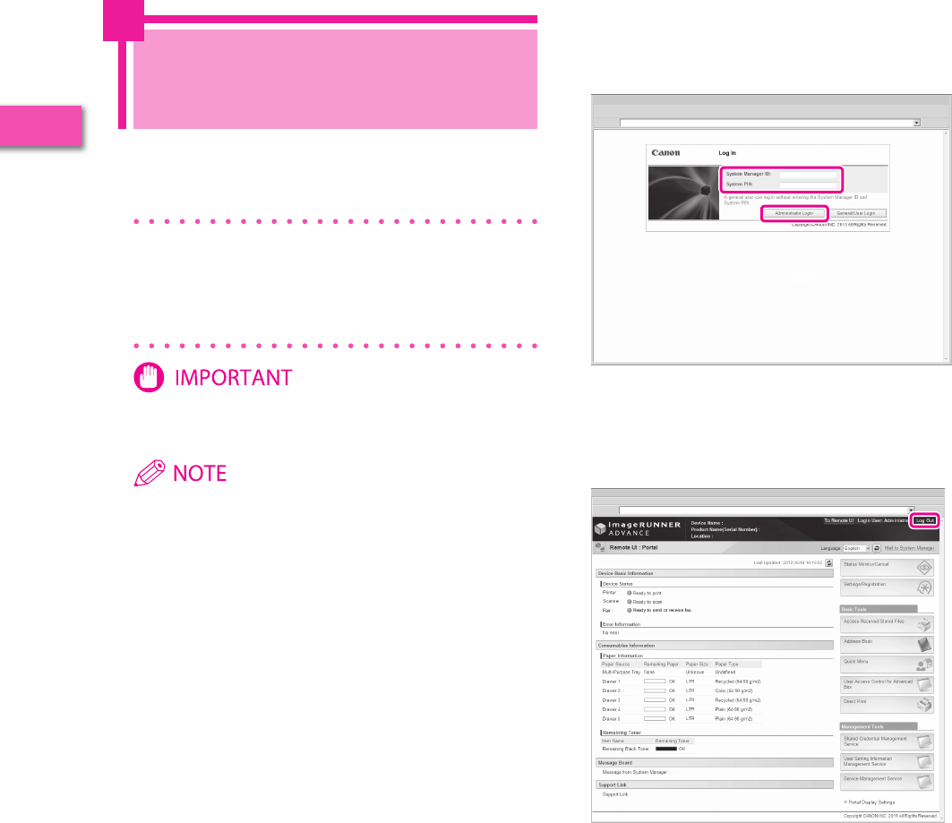 Managing by Using the Remote UI (p. 83)
