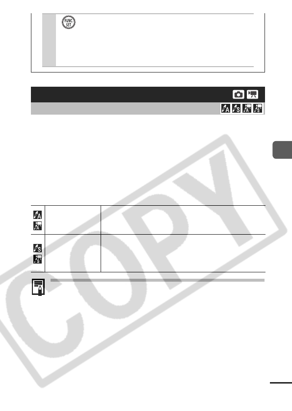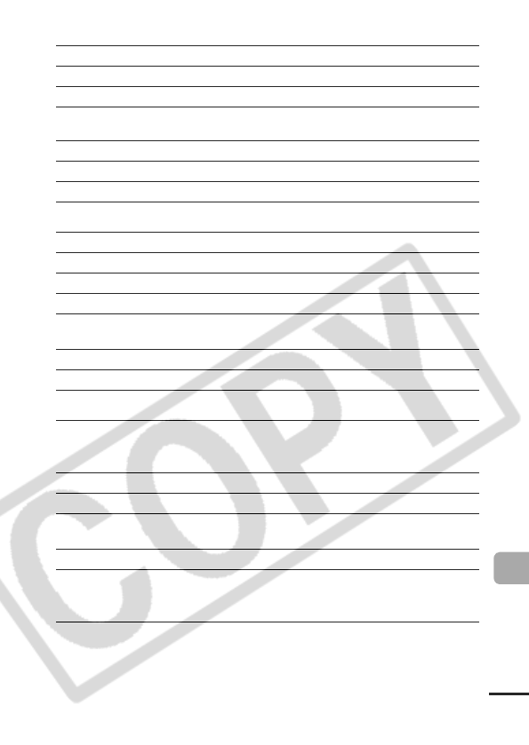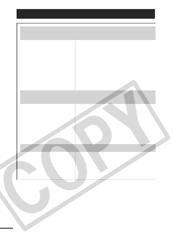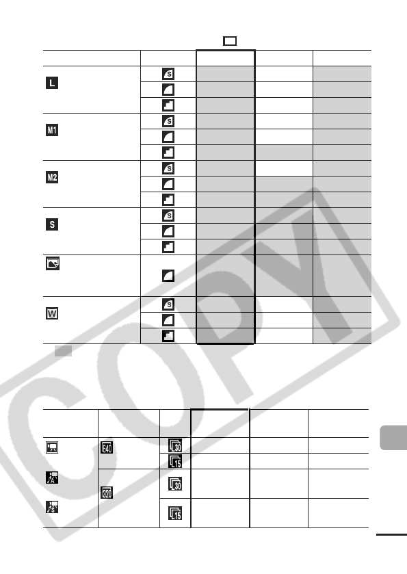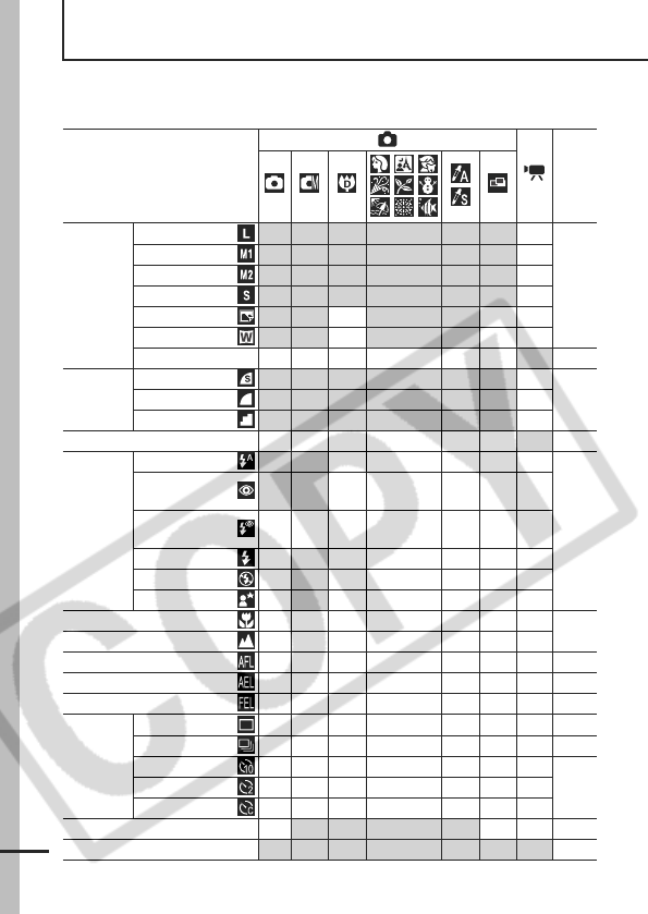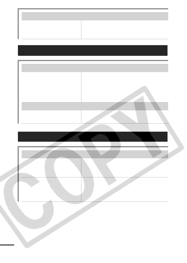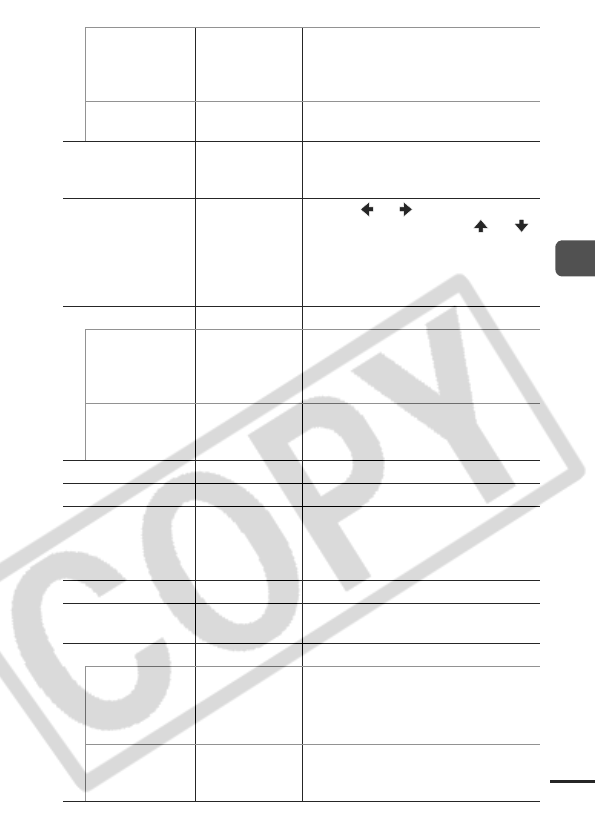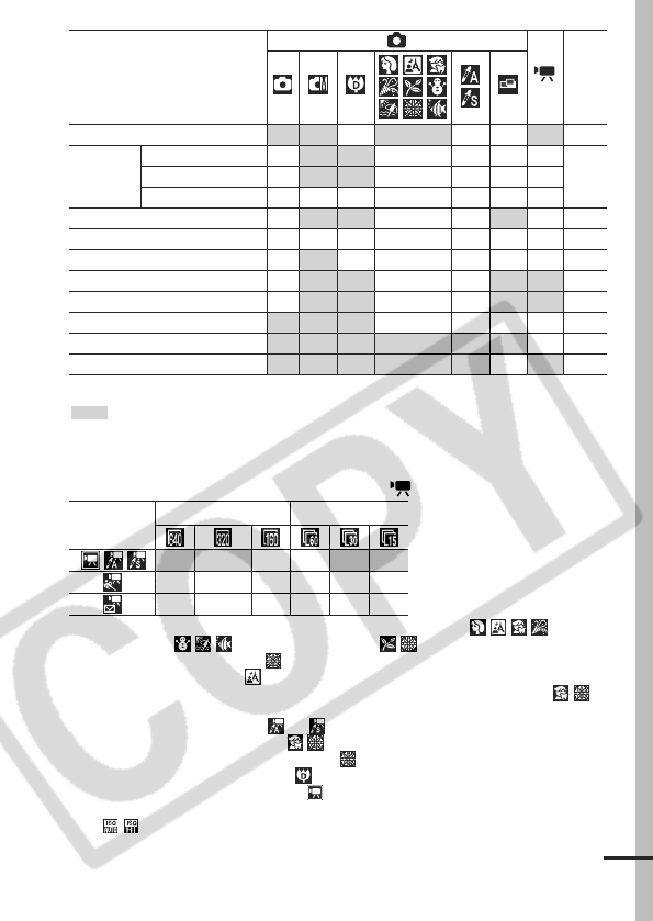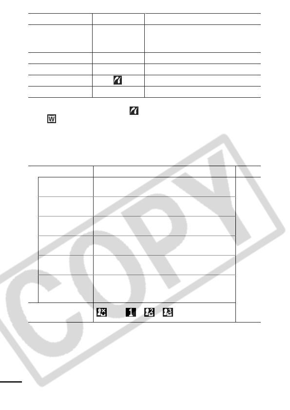 (Shaded Area):Setting is retained even when the camera power is shut off.
