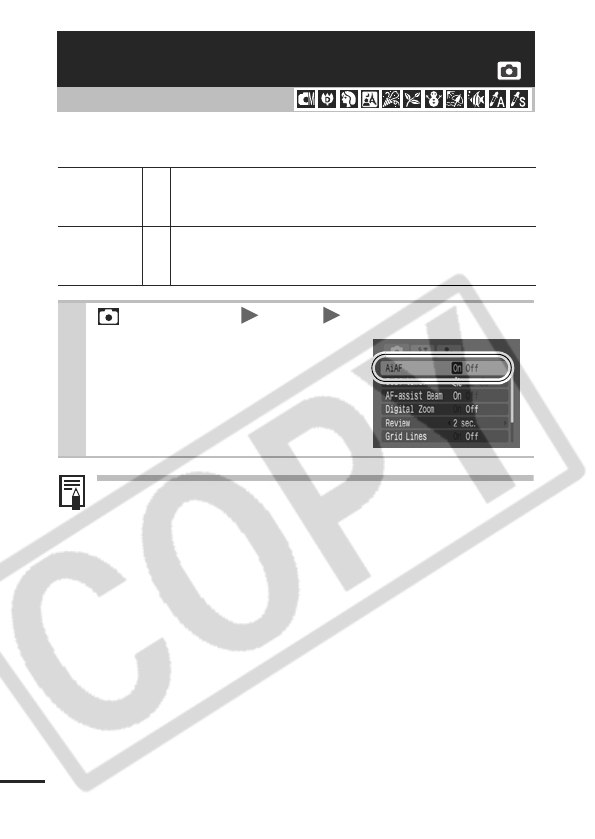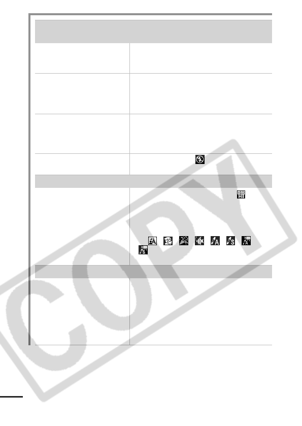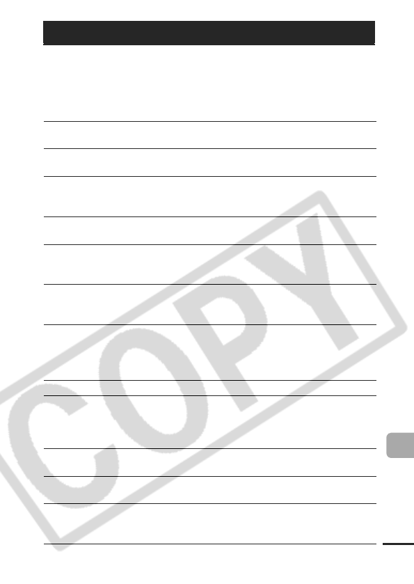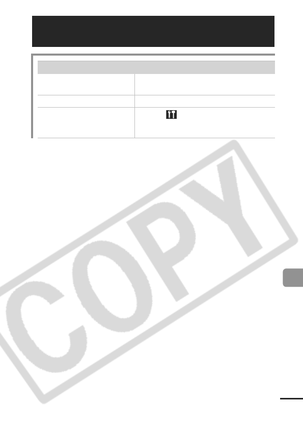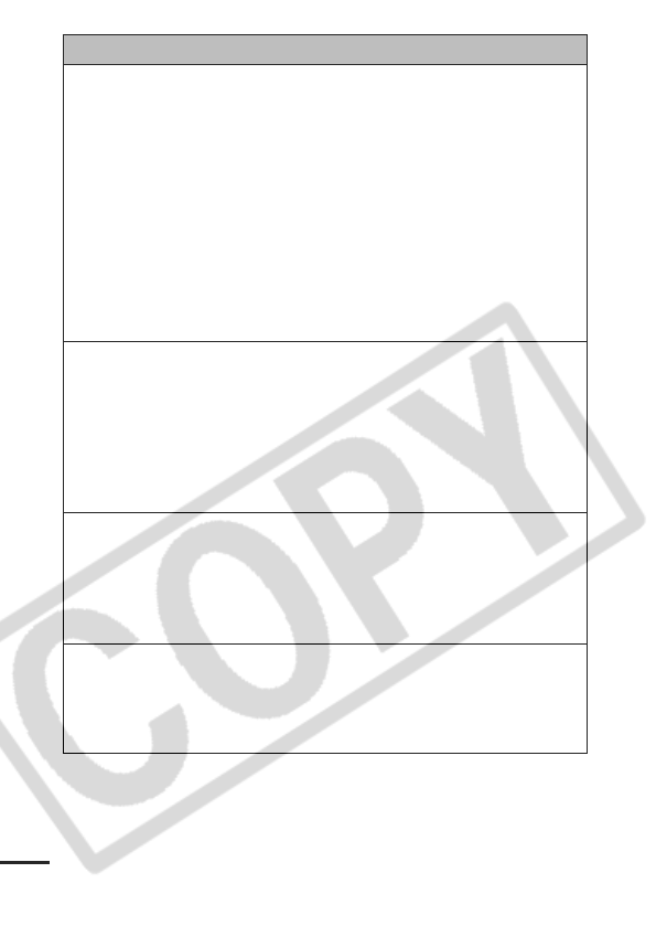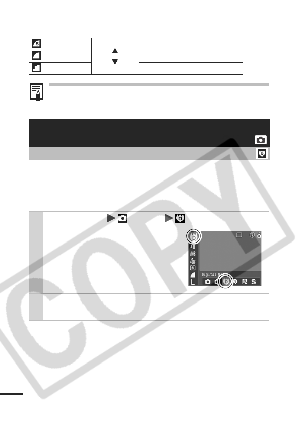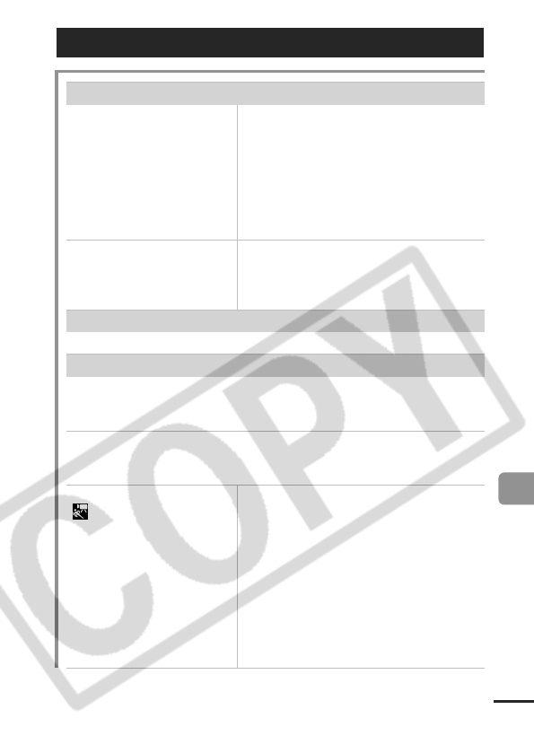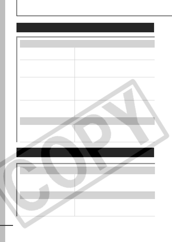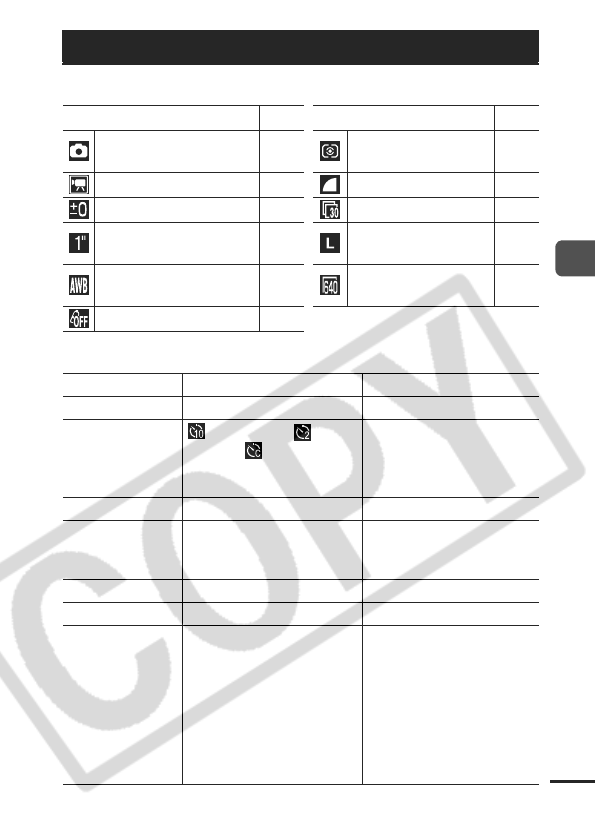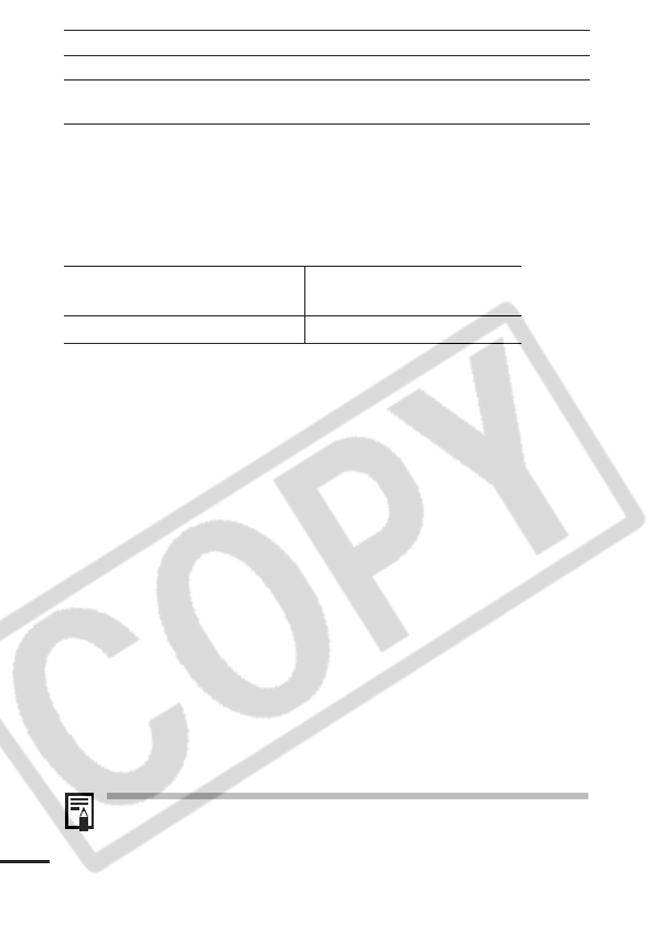 (Shaded Area):Setting is retained even when the camera power is shut off.