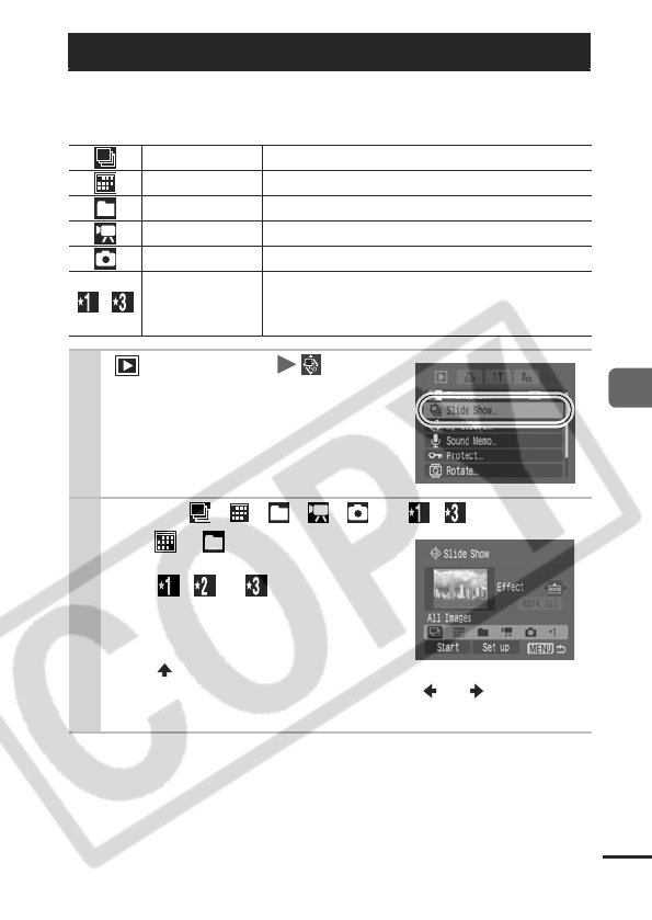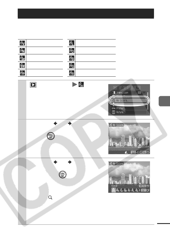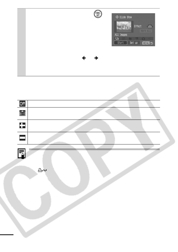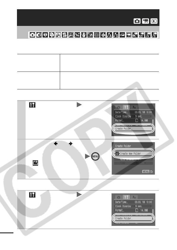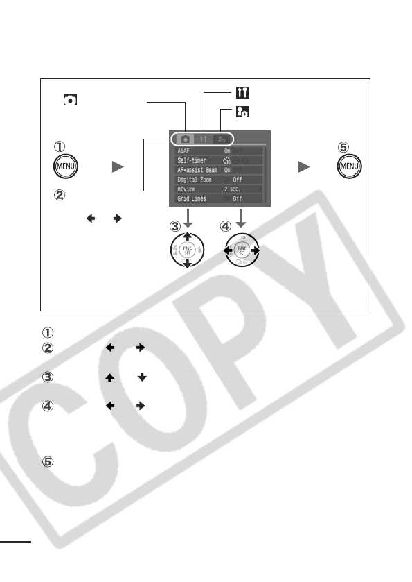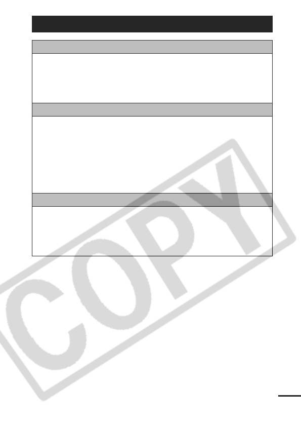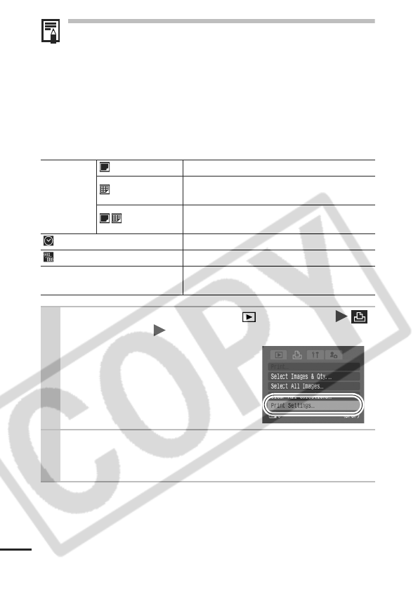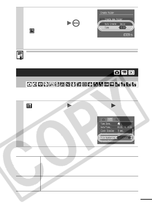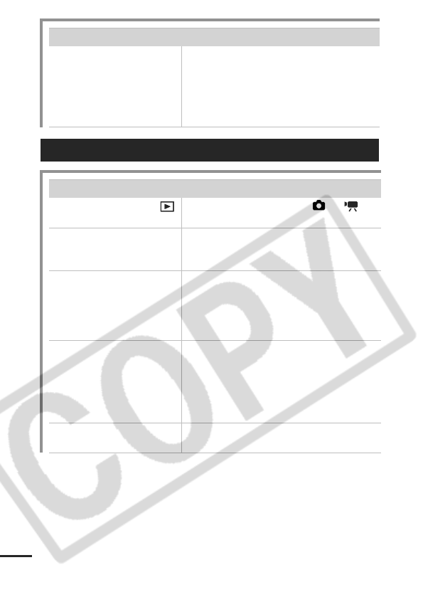 (Shaded Area):Setting is retained even when the camera power is shut off.
