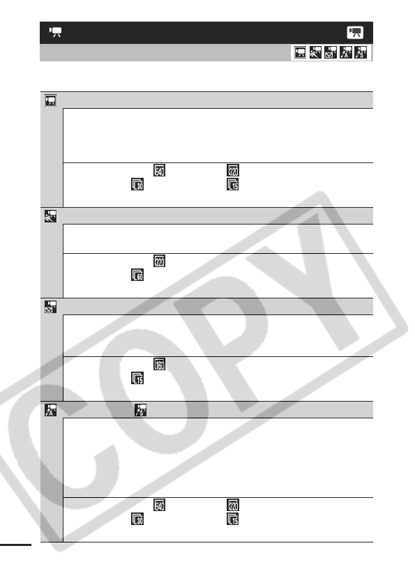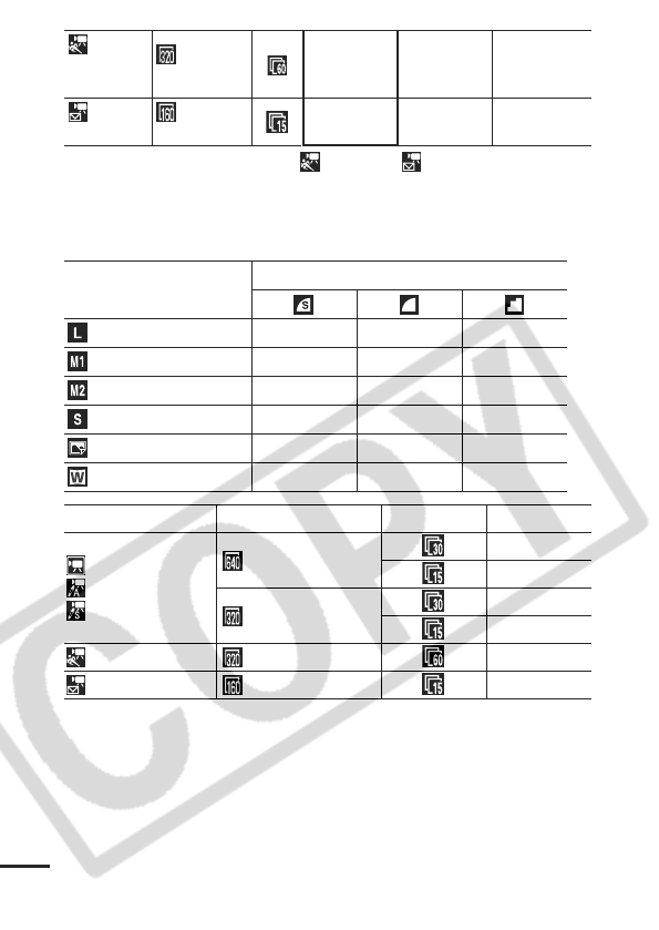 (1)(2) The recording pixels and frame rates for the (Movie) mode are as follows.