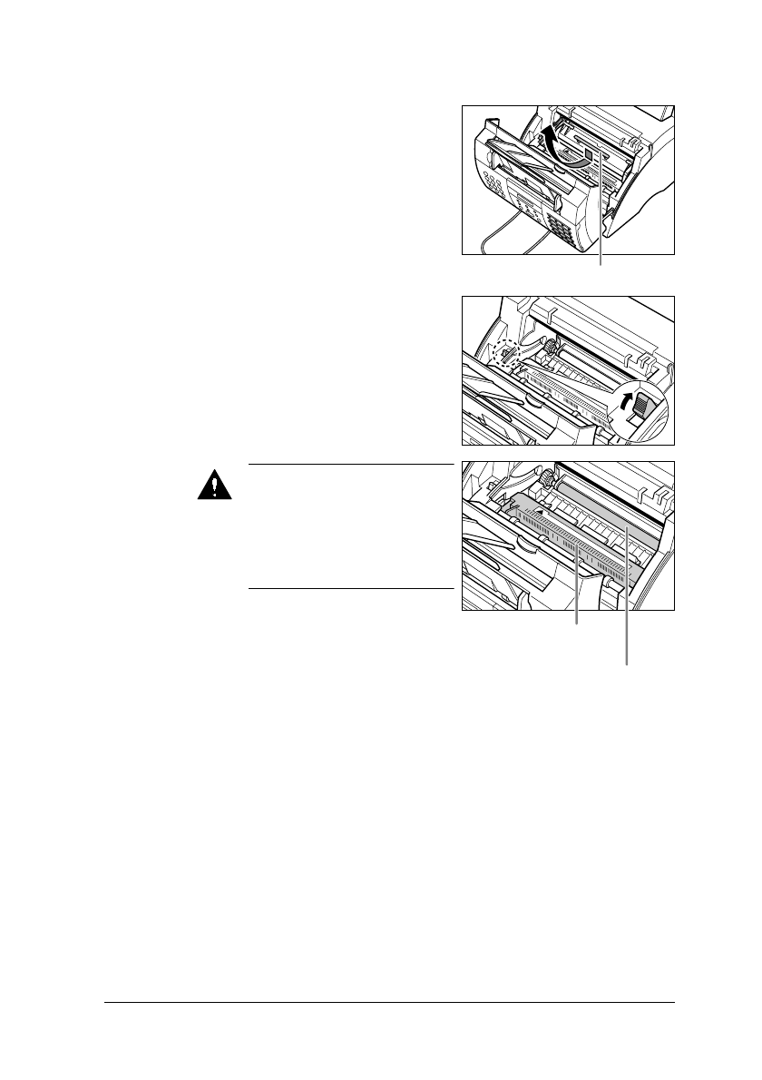 The label shown below is attached to the laser scan unit on the fax.