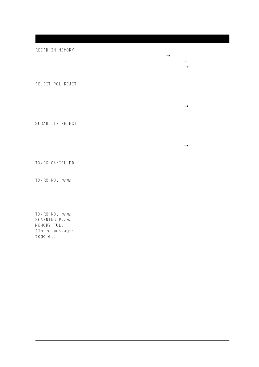 TX/RX NO. nnnn, SCANNING P.nnn, MEMORY FULL