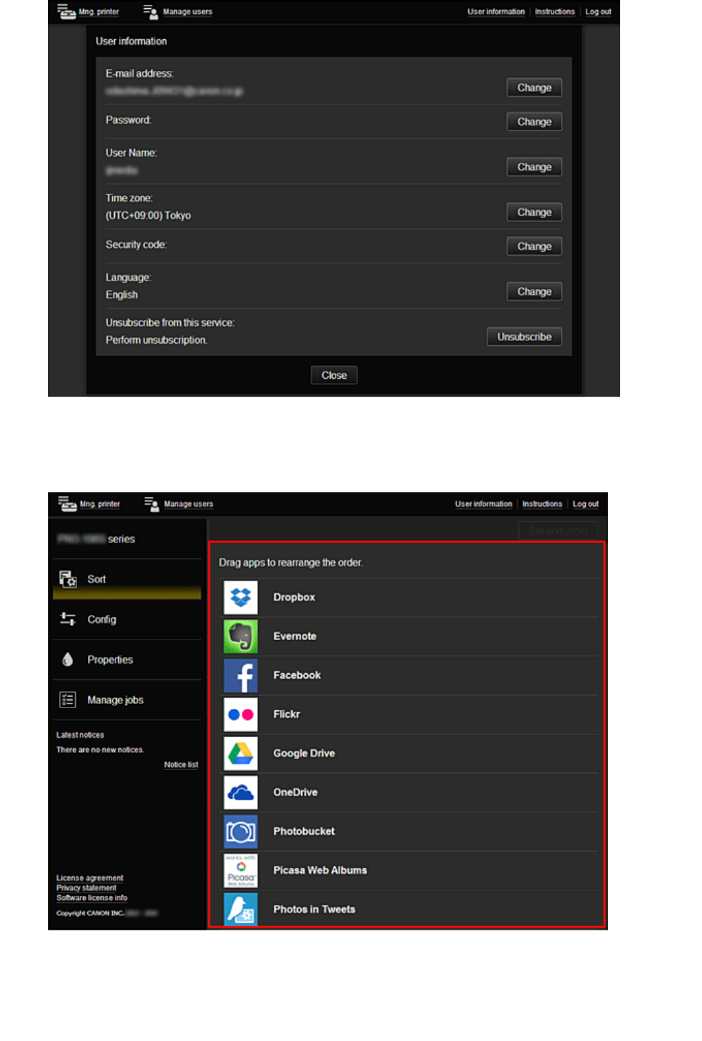 Ventana del Canon Inkjet Cloud Printing Center. . . . . . . . . . . . . . . . . . . . . . . . . . . . . . . . . . . 58