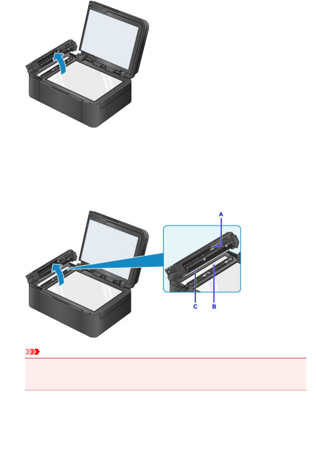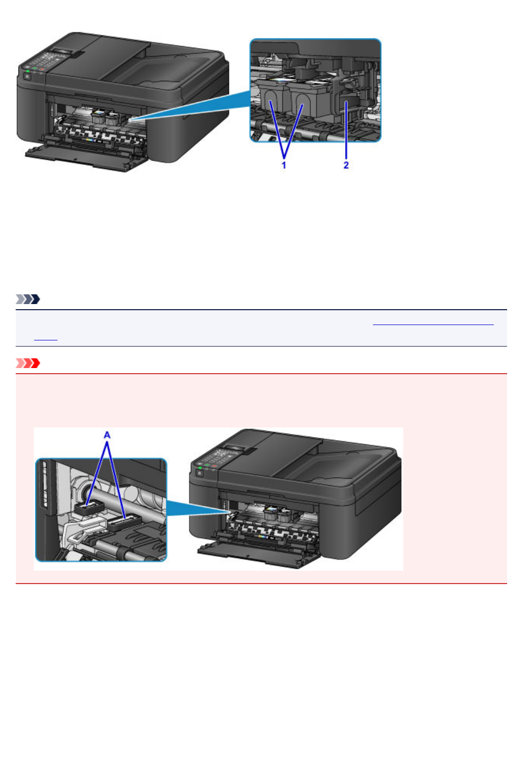 soporte de cartucho FINE, tenga cuidado para no tocar la película transparente ni la tira blanca (A).