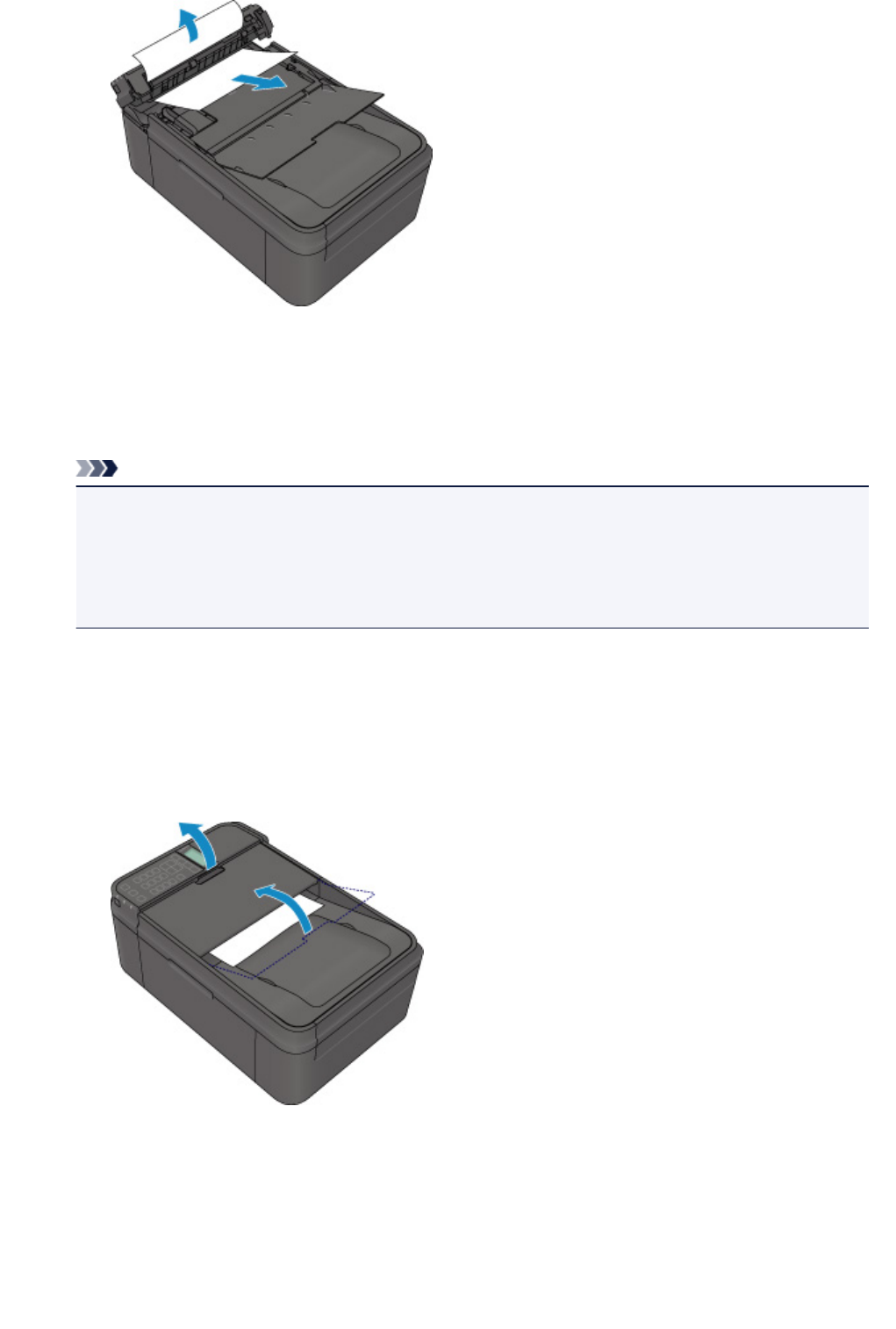 Cancel printing and turn off the machine. Then clear the jammed paper or protective material that is