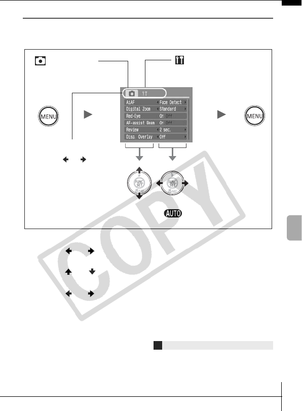menu is displayed on the camera’s