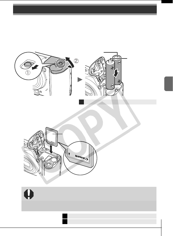 • Installing the batteries and memory card