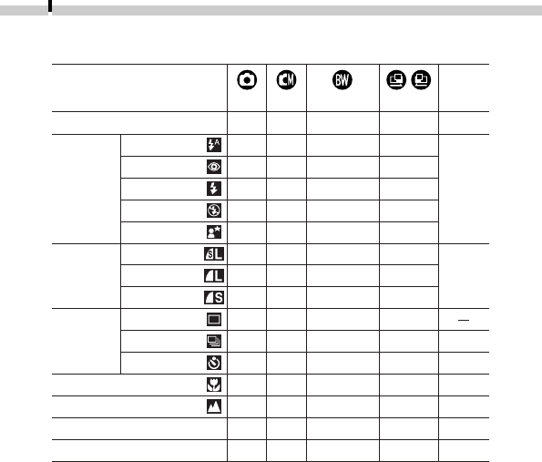Functions Available in Each Shooting Mode .................... 34