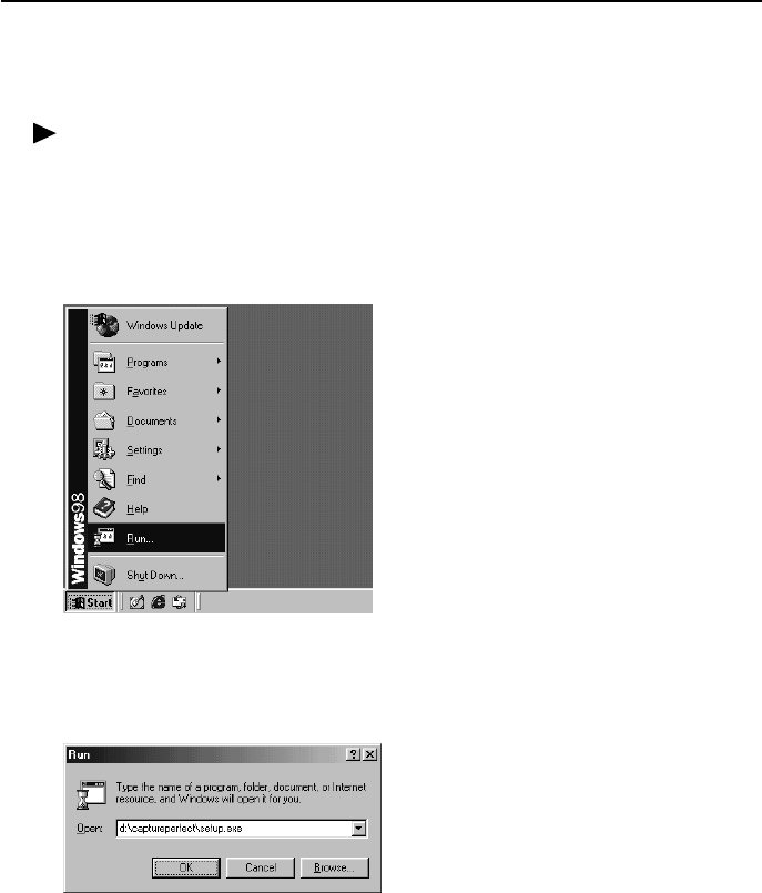 In the Open box, type “D:\CapturePerfect\Setup.exe” (where “D” is the drive