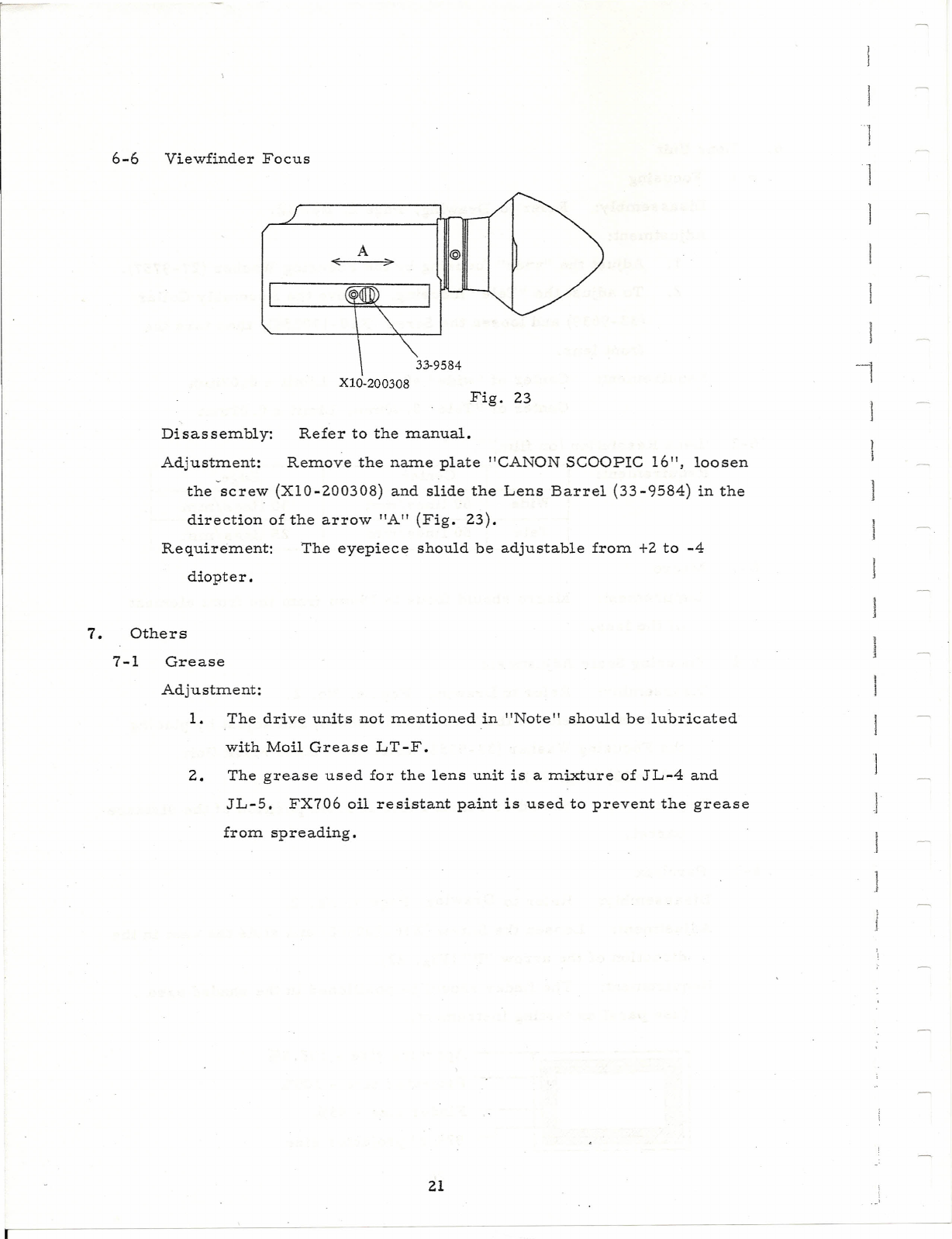 Adjustment: Remove the name plate "CANON SCOOPIC 16", loosen