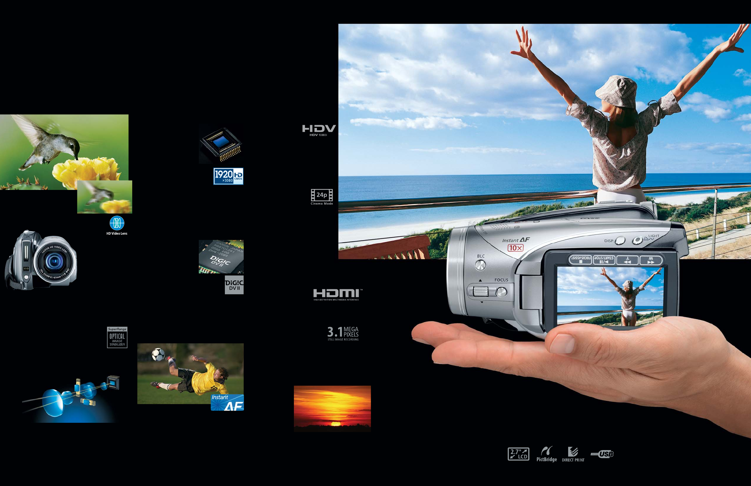 Canon’s optical and technological superiority for a total HD experience. The Canon 10x HD Video