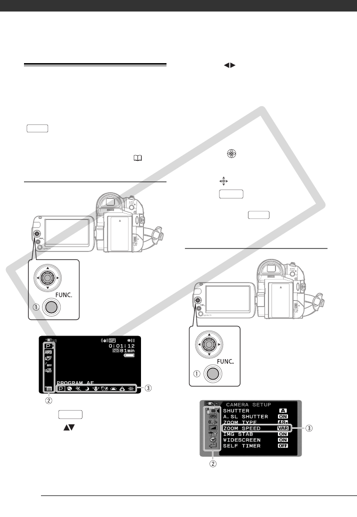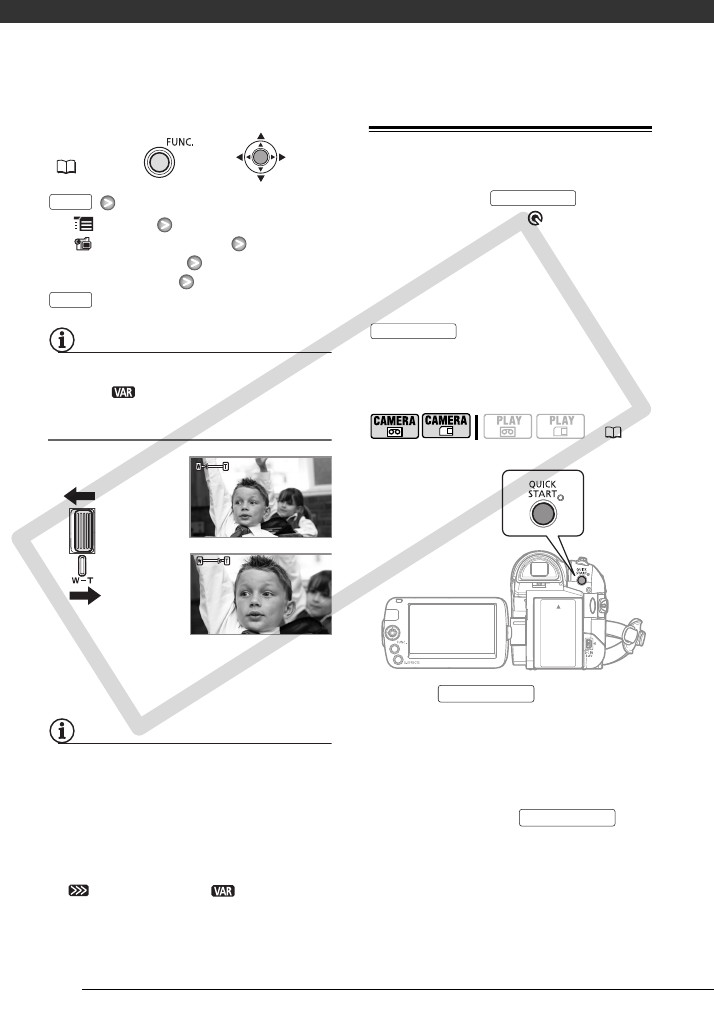 - The variable zoom speed depends on how you operate the zoom lever: Press gently for slower zooms; press harder for faster zooms. With this option, the zoom speed will be faster in record pause mode.