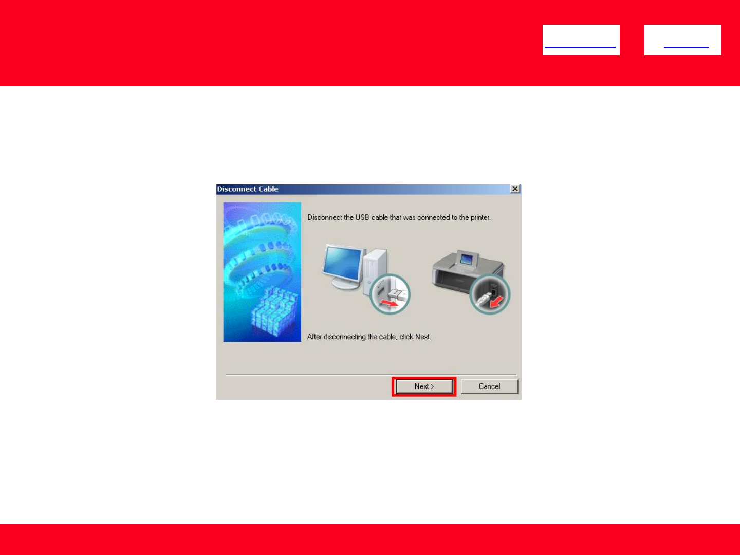 Connect the supplied USB cable to the printer and computer when the Connect Cable screen appears