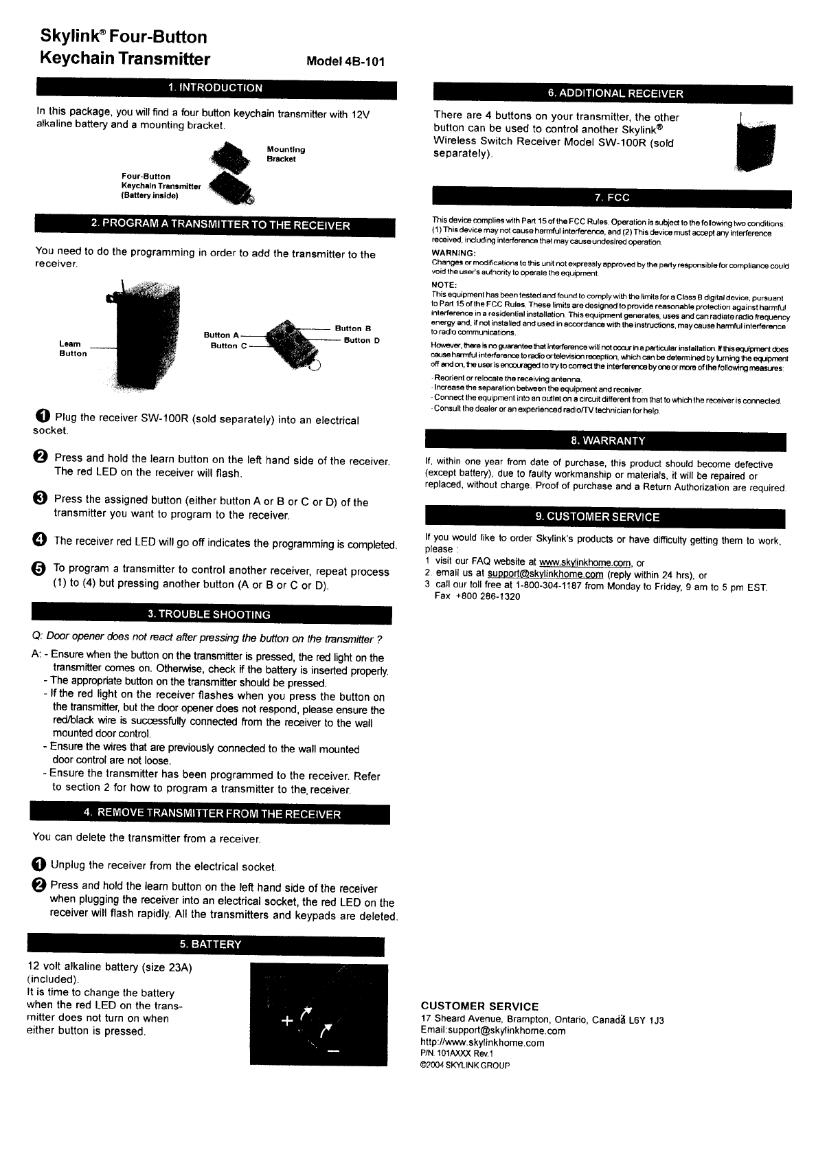 Capital Prospect 4BTX Remote Control (433.9MHz Tx) User Manual