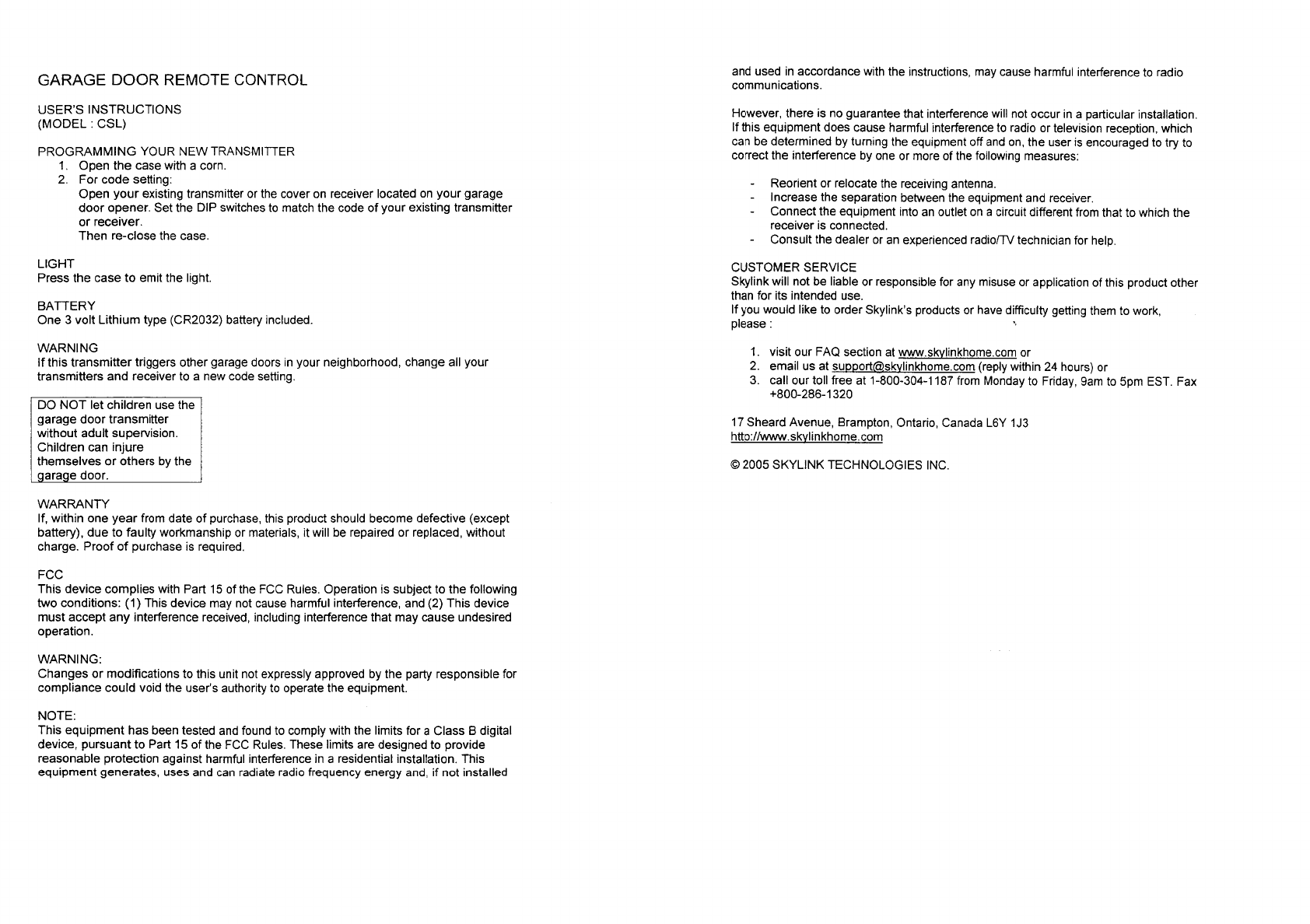 Capital Prospect CSL Remote Control Transmitter User Manual