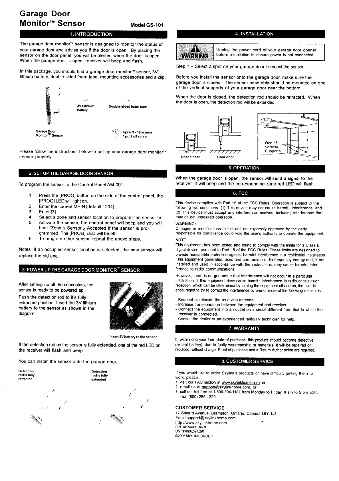 Capital Prospect GS101 Garage Door Sensor (Transmitter) User Manual