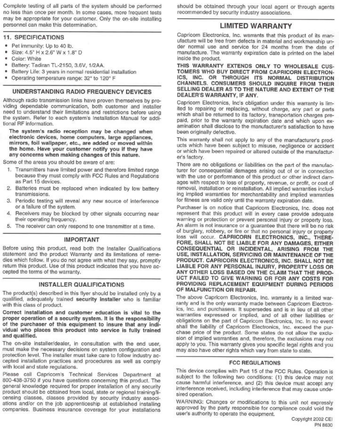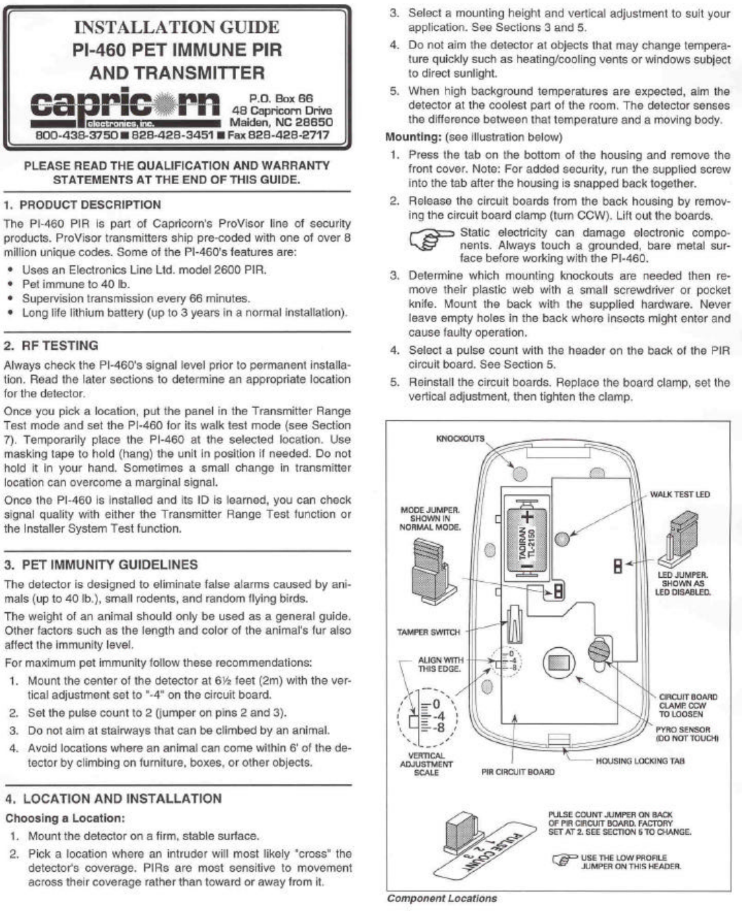 Capricorn Electronics Inc Security/Remote Transmitter PI460 User Guide