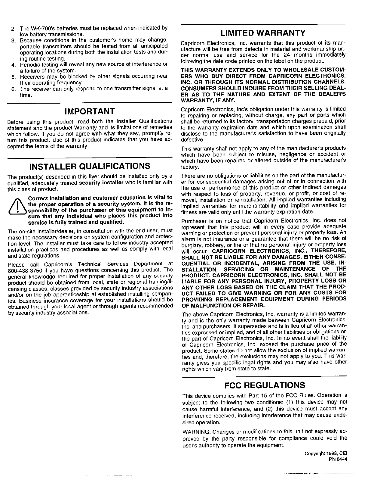 Capricorn Electronics WK700 Keypad Transmitter User Manual 8
