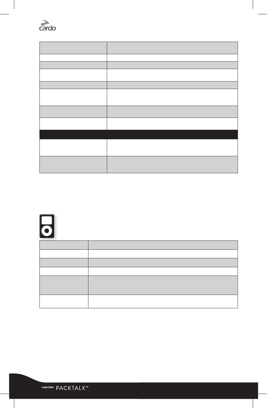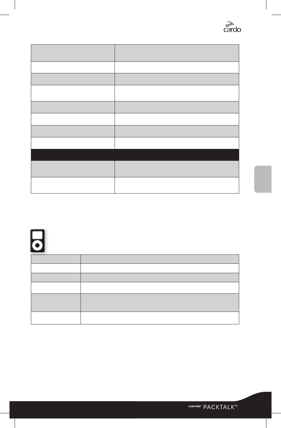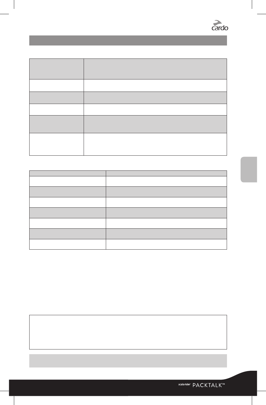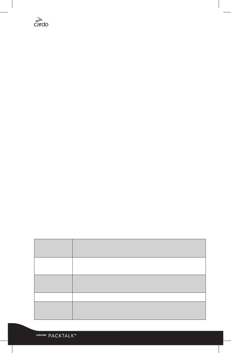 producten, en in het bijzonder het gebruikt van opladers van derden of van Bluetooth®-apparatuur. Voorts is Cardo niet verantwoor-