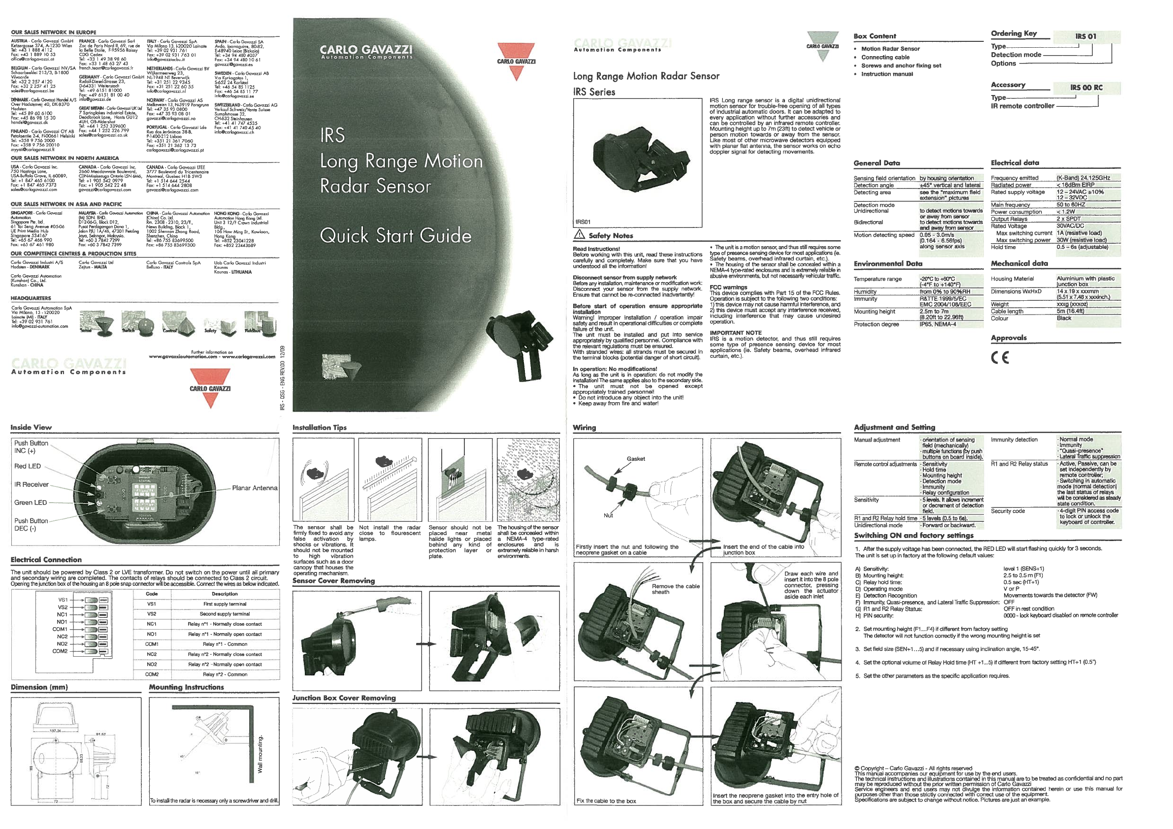 Carlo Gavazzi Logistics IRS01 Industrial Motion Sensor User Manual Quick Start Guide