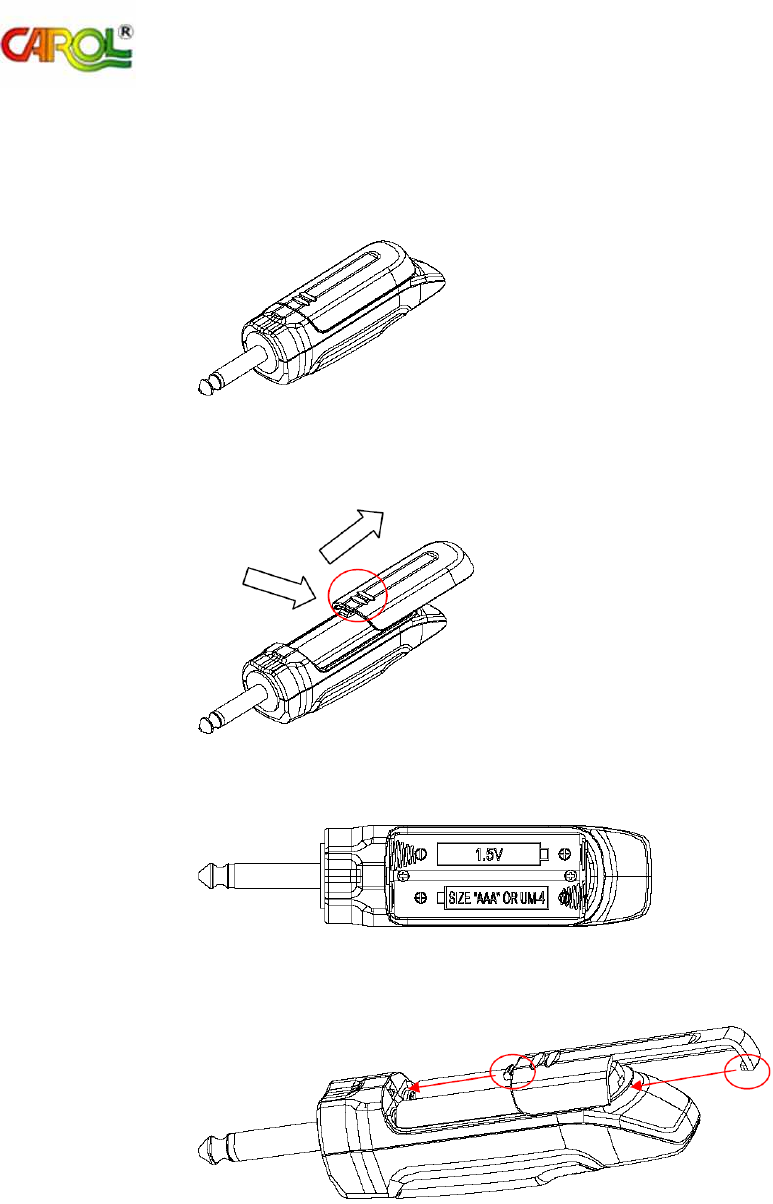 (3) Follow the indicated battery direction and put in two AAA batteries.