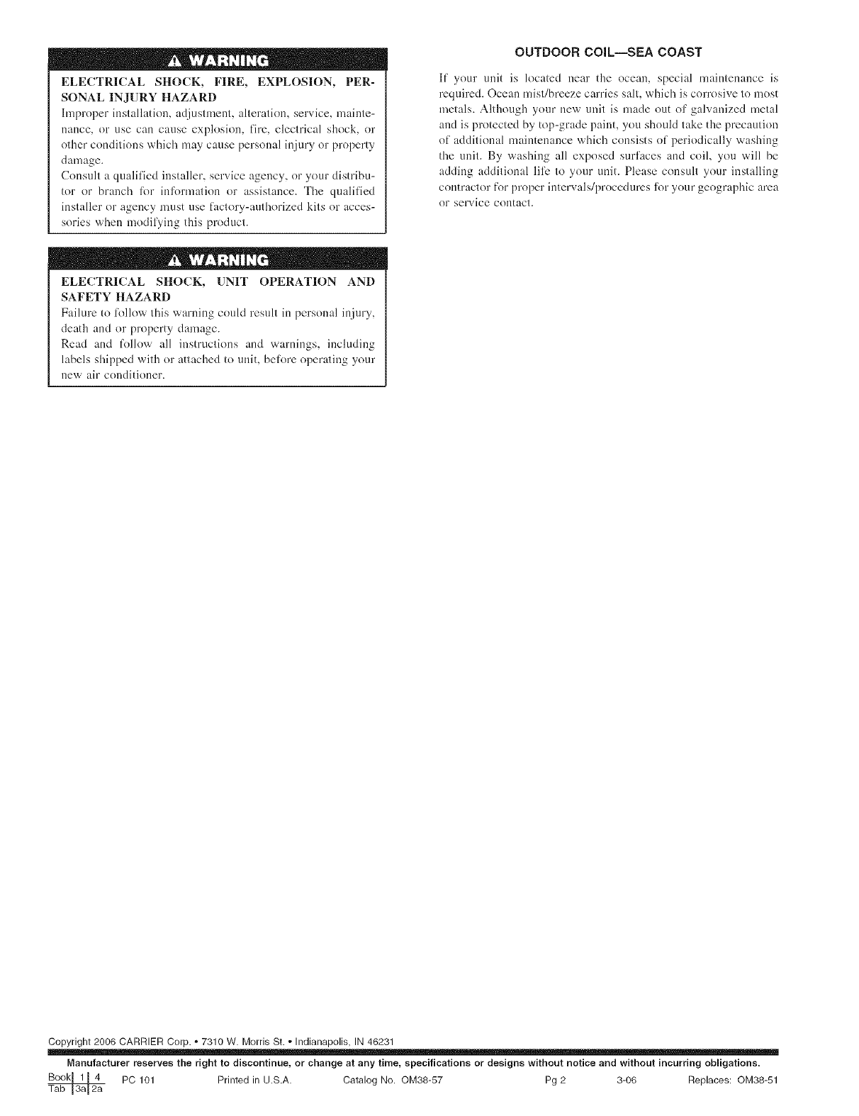Be°k 1L_L__ PC 101 Printed in USA Catalog No OM38-57 Pg 2 3-06 Replaces: OM38-51