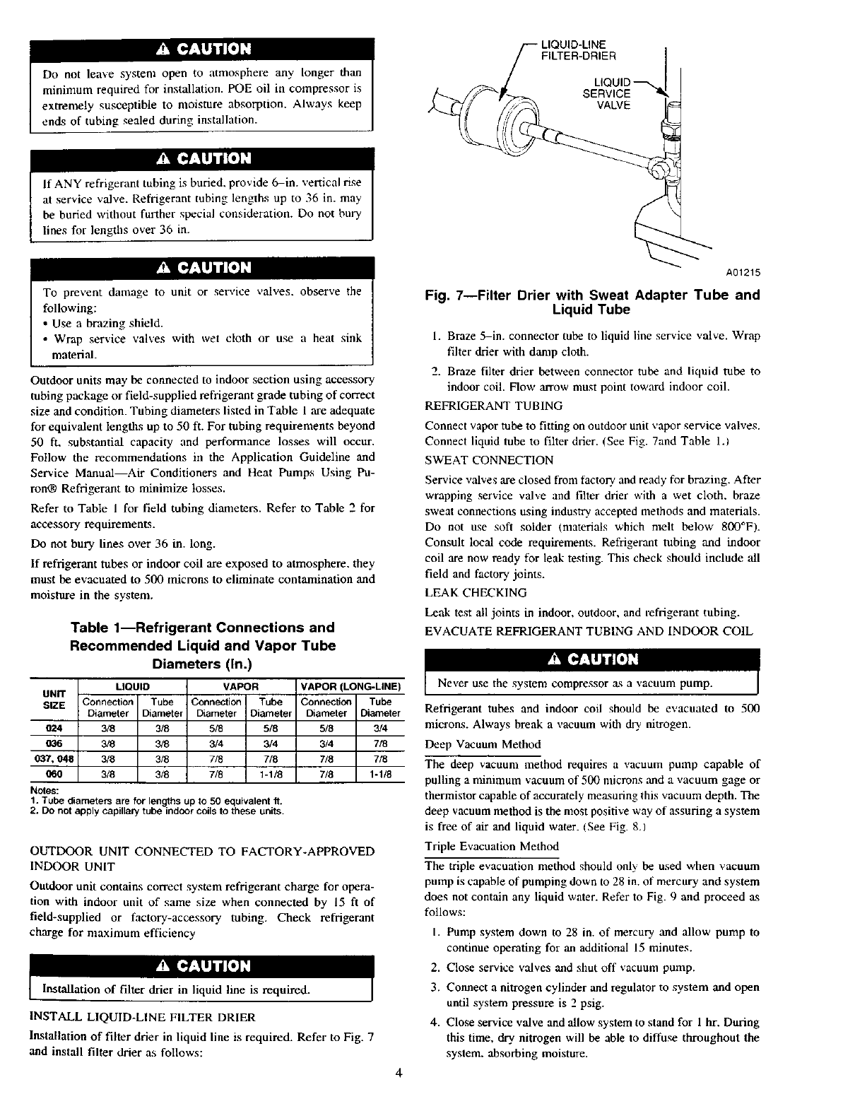 IMPORTANT: Maximum liquid-line size is 3/8 in. O.D. for all
