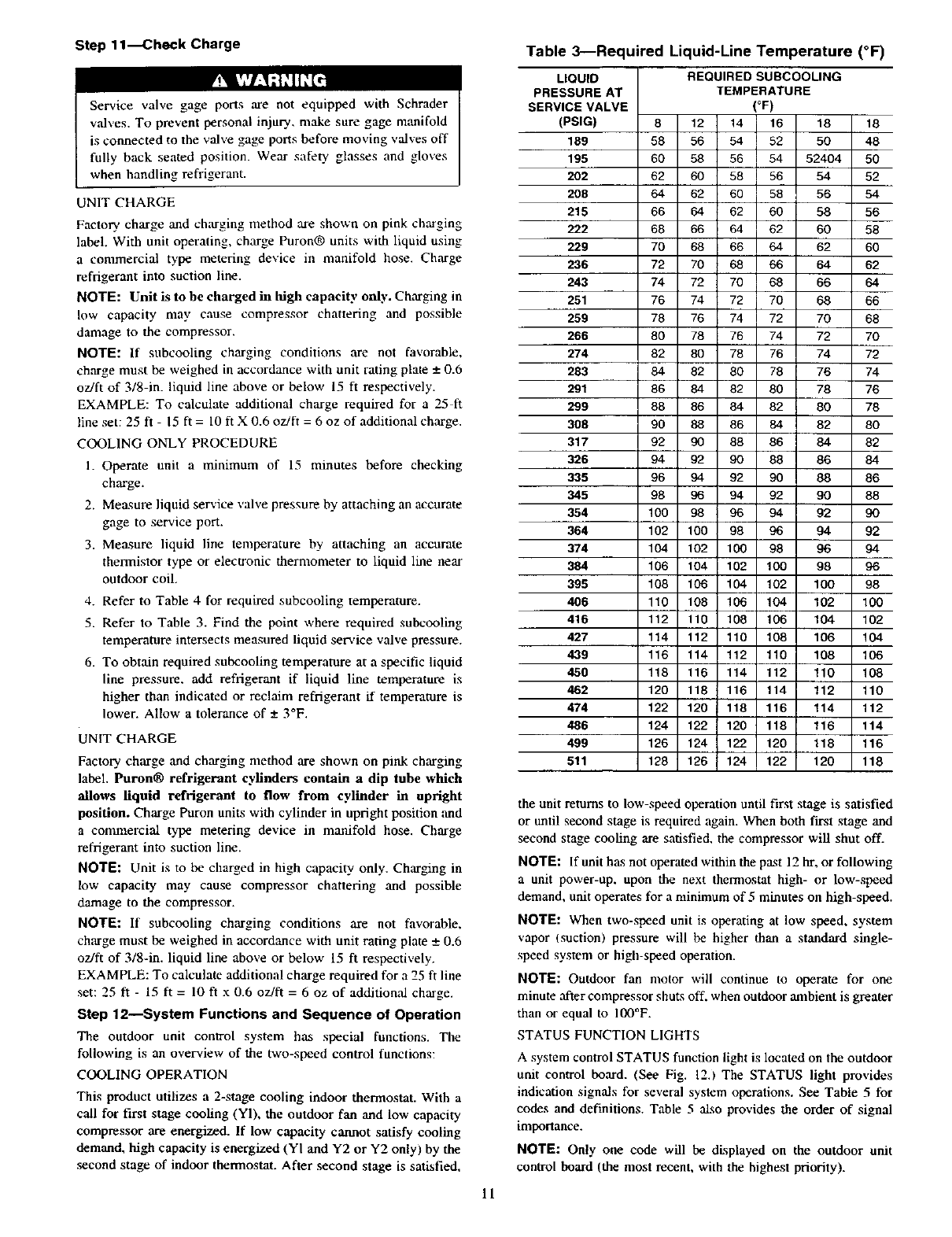 tion, check refrigerant charge using charging information located