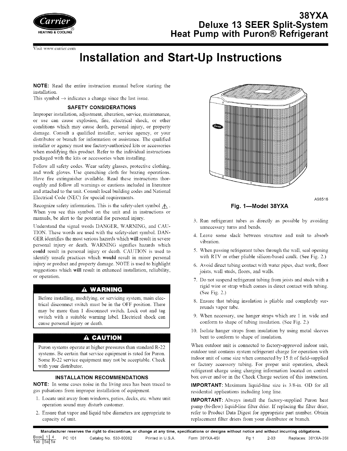 User Manual: Carrier 38YXA030 SERIES330 38YXA030 SERIES330 CARRIER HEAT PUMP - Manuals and Guides View the owners manual for your CARRIER HEAT PUMP #38YXA030SERIES330. Home:Heating & Cooling Parts:Carrier Parts:Carrier HEAT PUMP Manual