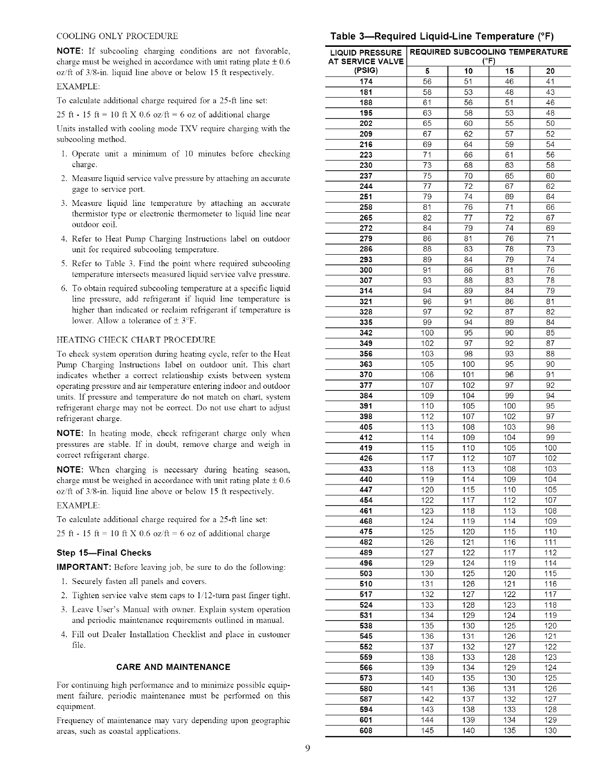 IMPORTANT: Maxinmm liquid-line size is 3/8-in. OD for all