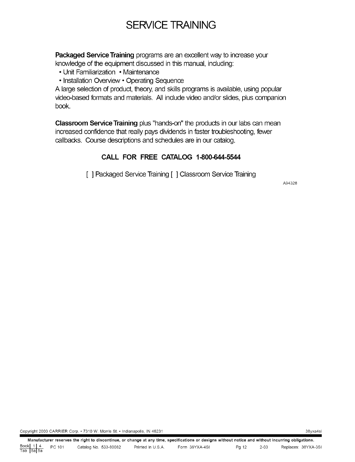 Copyright 2003 CARRIER Corp. • 7310 W. Morris St • indianapolis, IN 46231 38yxa4si
