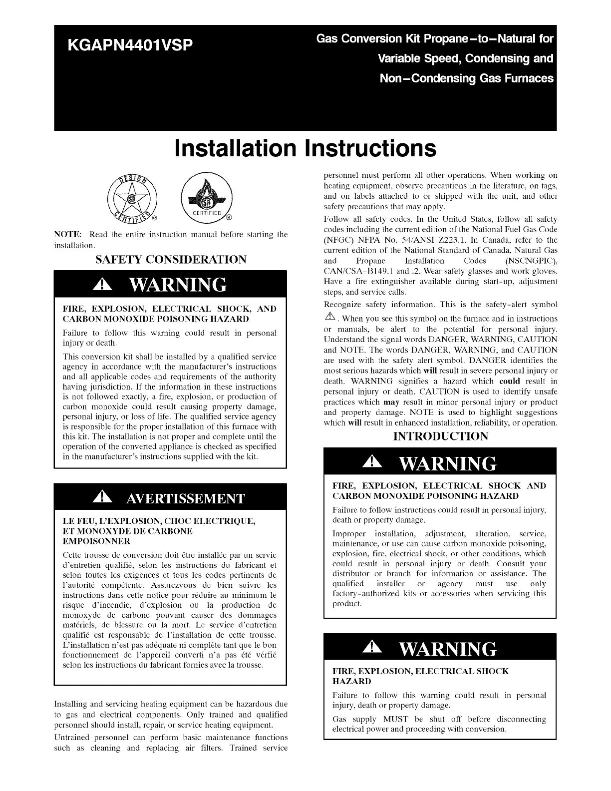 (NFGC) NFPA No. 54/ANSI Z223.1. In Canada, refer to the