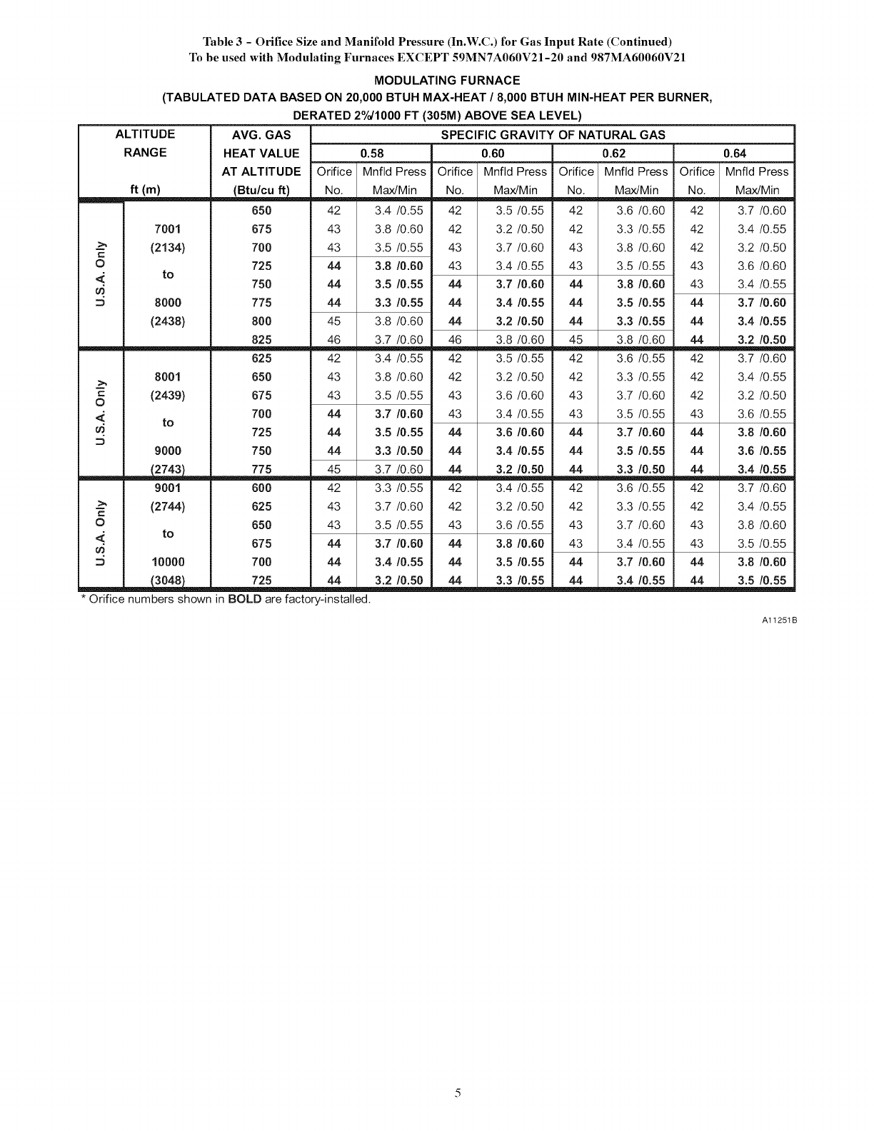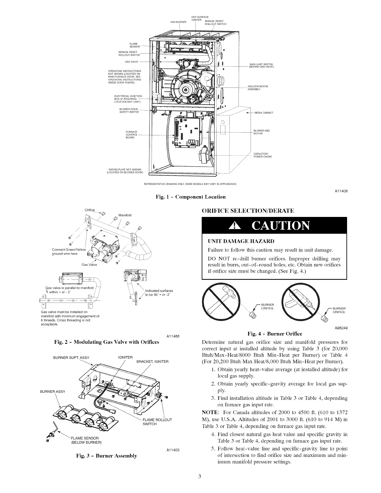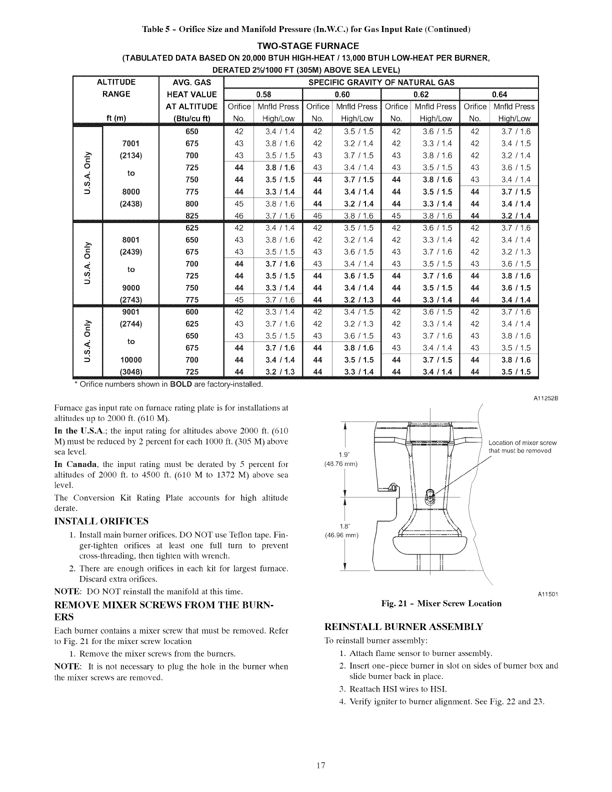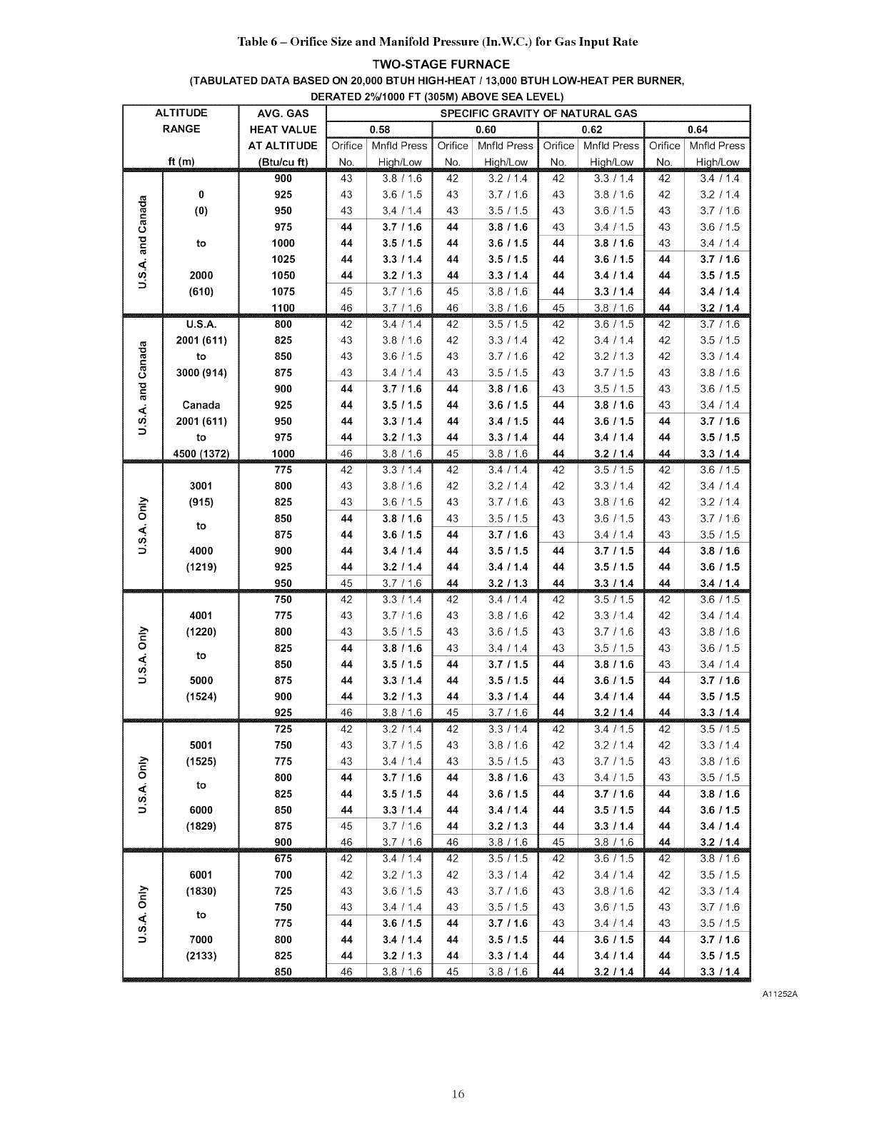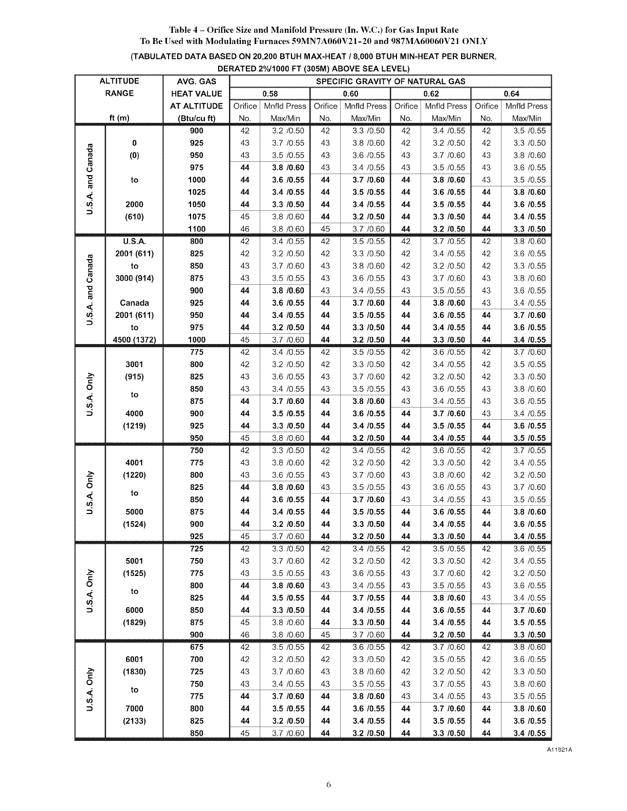 NOTE: Furnace gas inputrate on ratingplate is for installationsupto 2000ft. (610m)above sea level, inU.S.A.the inputratingfor altitudesabove 2000ft. (610m) must