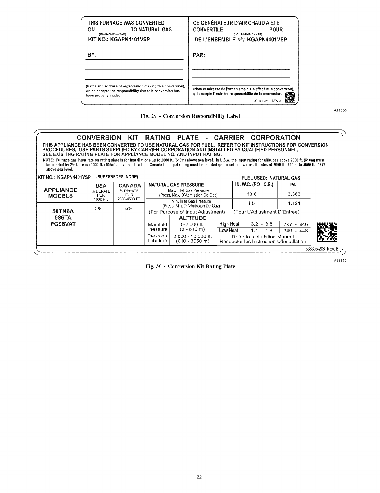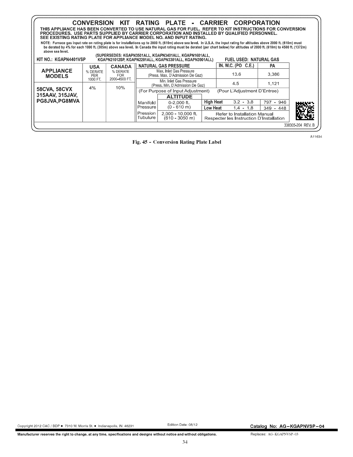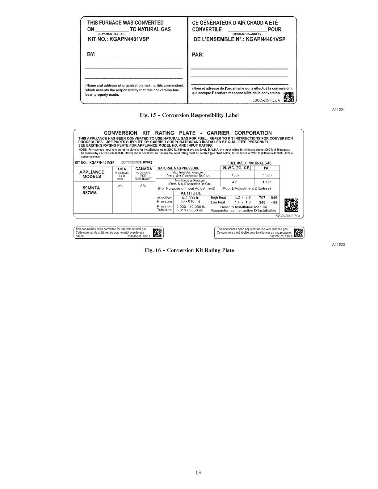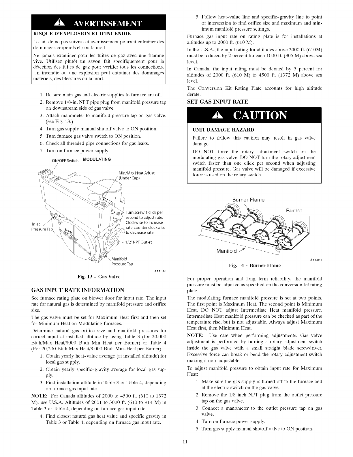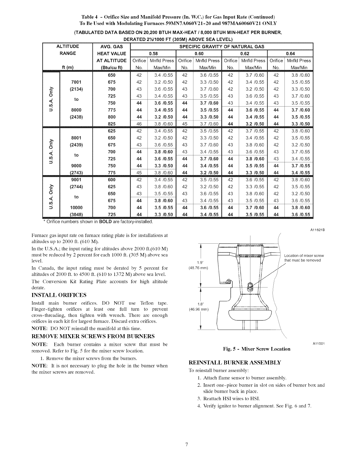 NOTE: Furnace gas inputrate on ratingplate is for installationsupto 2000ft. (610m)above sea level, inU.S.A.the inputratingfor altitudesabove 2000ft. (610m) must