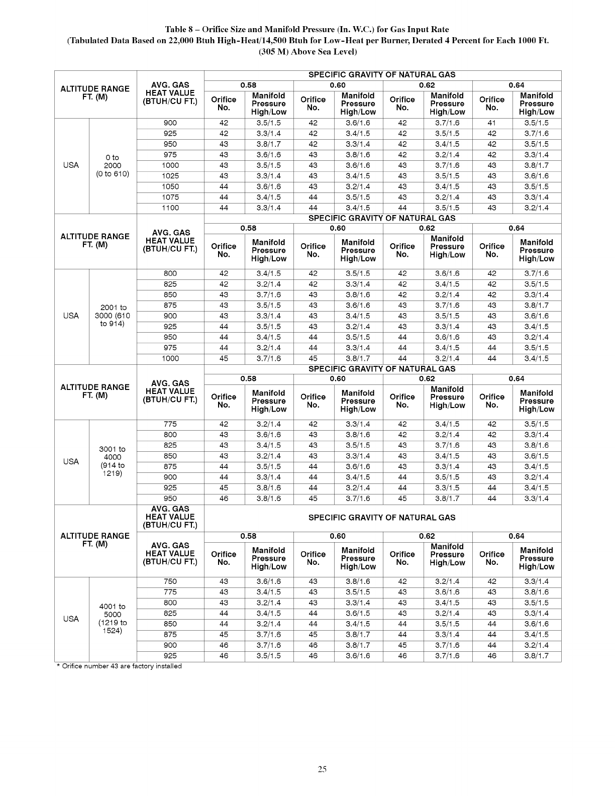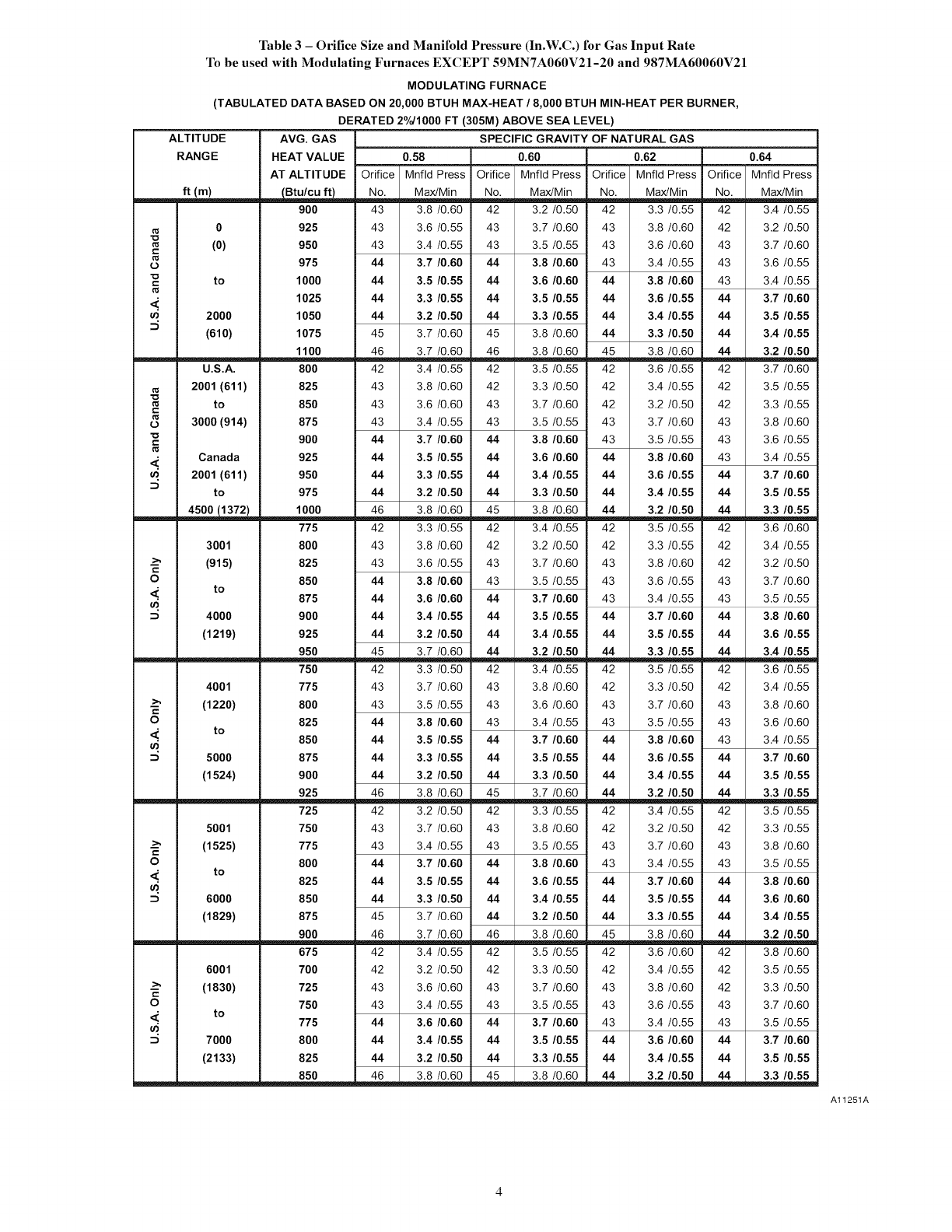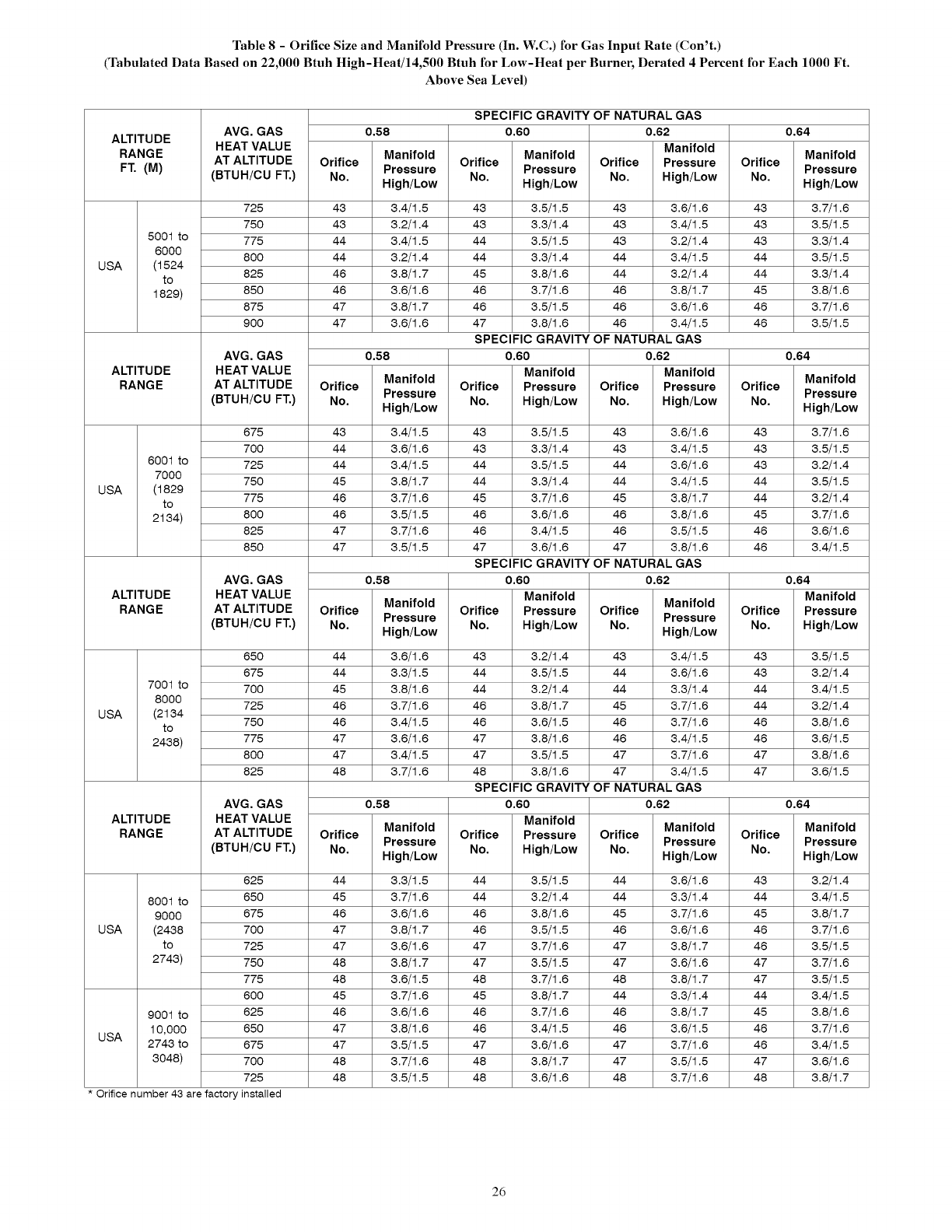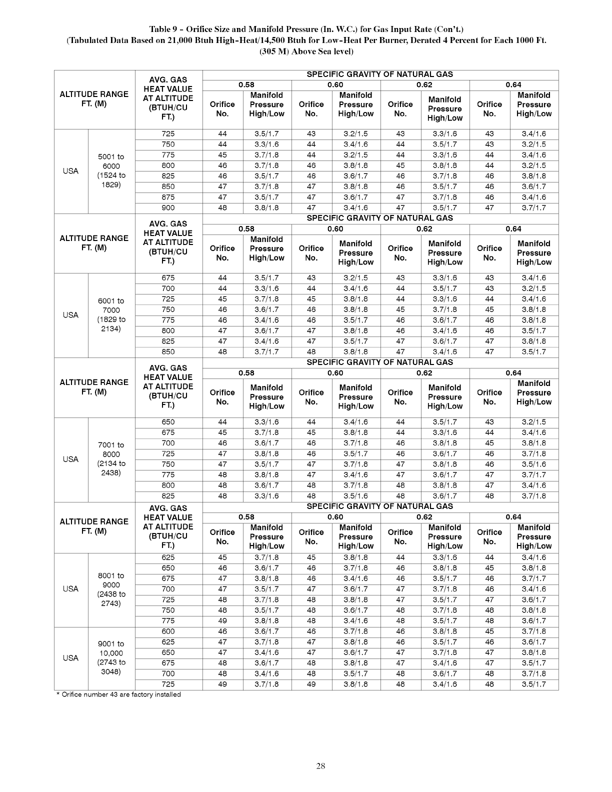 be derated by 4%for each 1000ft. (305m)above sea level, in Canadathe input ratingmustbe derated (per chartbelow) for altitudesof 2000ft. (610m)to 4500ft. (1372m)