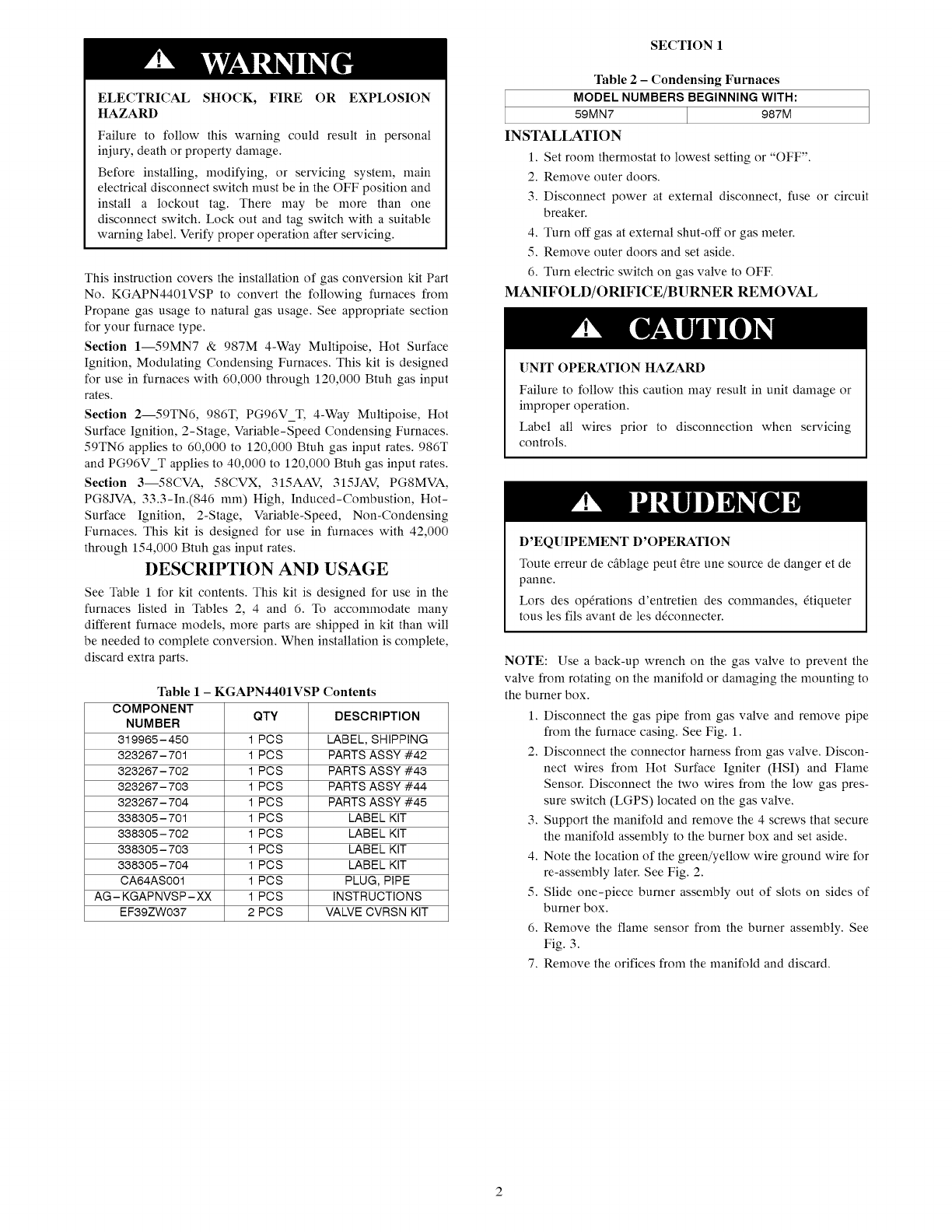 Ignition, Modulating Condensing Furnaces. This kit is designed